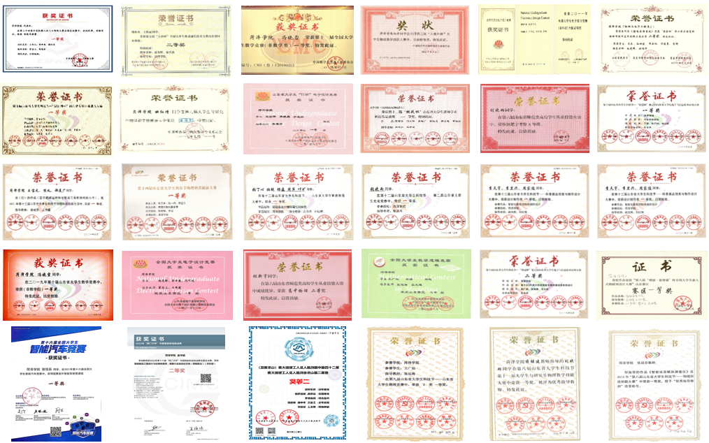 教学质量稳步提高 近年来, 1人被评为“中国大学生自强之星”,1人获全国大学生物理教学技能大赛特等奖、14人获一等奖、17人获二等奖,19人获山东省大学生物理教学技能大赛一等奖、24人获二等奖;3人获中国机器人及人工智能大赛全国总决赛一等奖,3人获全国大学生智能汽车竞赛一等奖,1人获中国智能制造挑战赛全国总决赛二等奖,获全国大学生电子设计竞赛二等奖5项、山东赛区一等奖4项、二等奖6项;获第八届全国大学生嵌入式物联网大赛三等奖2项、山东赛区一等奖3项;获山东省大学生物理科技创新大赛一等奖8项、二等奖12项;获山东省第十二届“挑战杯”一等奖1项,二等奖1项;5篇本科生论文在《大学物理》等学术刊物发表;10余名学生获得国家专利授权。