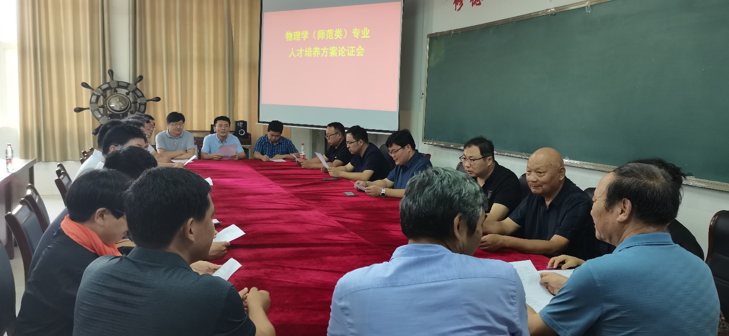 2021年7月24日,为全面推进物理学师范专业认证工作深入开展,深化教育教学改革,提高人才培养质量,根据《伟德国际1946bv师范专业认证工作方案》,物理与电子工程院在综合实验楼W207召开了2021版物理学专业人才培养方案修订论证会。特邀请到了往届物理学专业优秀毕业生、优秀校友曲阜师范大学刘广强教授、中国科院合肥物质研究院王永亮教授、淮阴工学院王延宗教授、曹县一中刘仰杰高级教师、东明一中李运霞高级教师、巨野实验中学刘海生高级教师、山东明灿光电科技有限公司周开峰总经理及退休教师代表;bevitor伟德国际1946院长徐兴磊、副院长蒋继建、教科办主任蔡鲁刚、物理系系主任物理学专业负责人张运海和学院部分骨干教师代表参加了本次论证会。