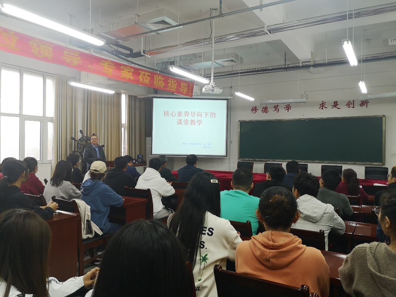 2021年11月5日,应学院邀请,菏泽一中思源学校教科处主任、模范教师、功勋教师、师德标兵、教学能手、教坛精英姜广峰教授,给物理学师范专业学生作《核心素养导向下的课堂教学》专题报告。这是学院为进一步强化大中衔接,促进师范生学会教学、学会育人,不断树立从教志愿,养成师德师能、促进全面发展的有力举措。