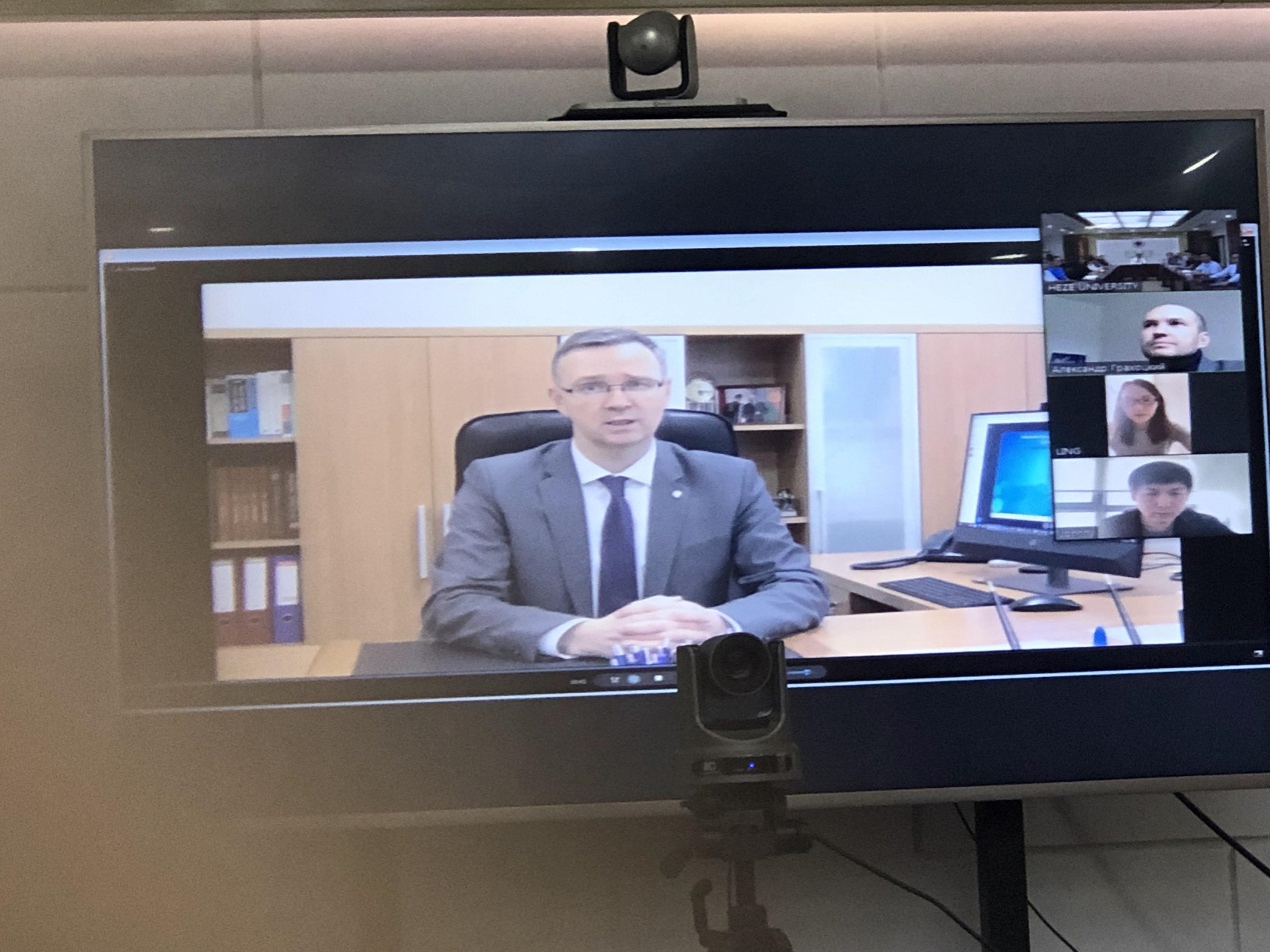 2021年9月23日下午,伟德国际1946bv-戈梅利国立大学线上互访暨合作办学工作会议在综合楼二楼视频会议室召开,双方校领导上线出席。