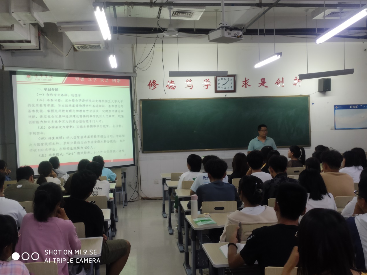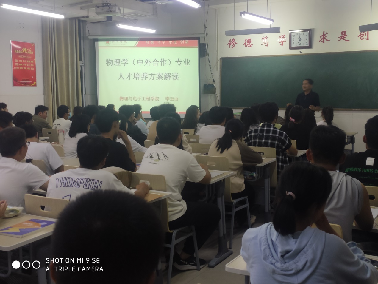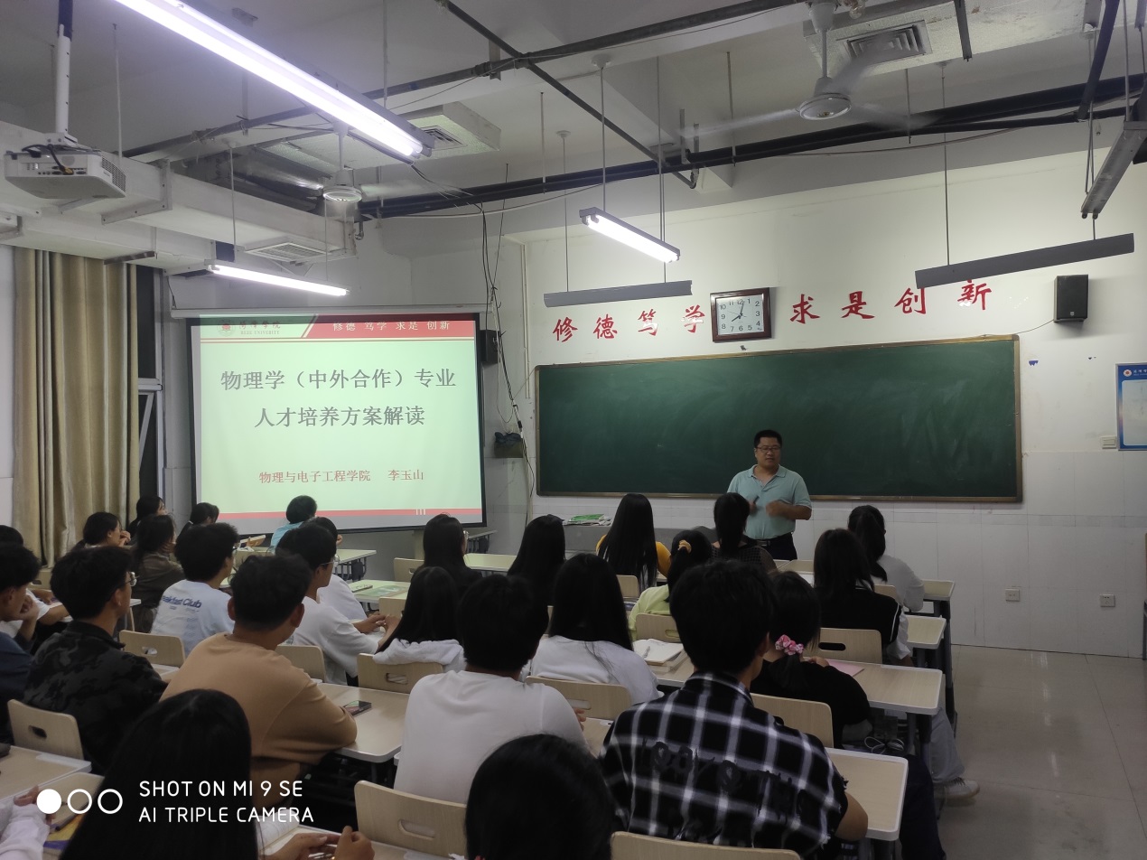 为让2022级物理学(中外合作)专业新生更好的了解物理学专业人才培养方案,bevitor伟德国际1946于9月22日在综合实验楼W502召开物理学专业人才培养方案解读培训会。国际交流与合作处张自海科长应邀出席培训会,培训会由物理系主任李玉山主持,2022级物理学专业93名新生参加此次培训会。