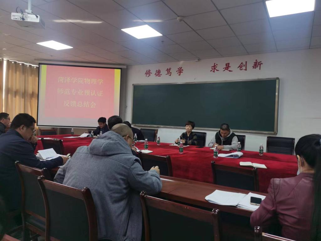 张运海副院长介绍,在预认证现场考查期间,专家组通过深入一线听课看课、走访、深度访谈、举行座谈会、查阅资料等多种方式对物理学专业进行了详细考查,从细微之处全面深入地了解了物理学专业的发展状况,指出了物理学专业在认证对标、专业建设和未来发展方面存在的问题与不足,并给出了指导意见与建议。张运海副院长要求各位老师按照专家组提出的问题,逐条逐项地梳理分析,认真整改,持续改进,深入总结做好预认证的后续反思和改进工作。