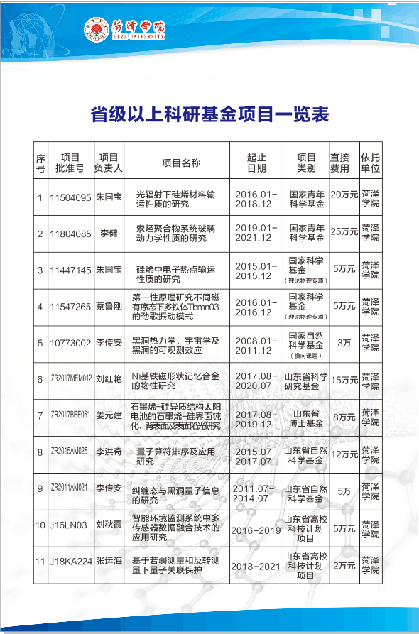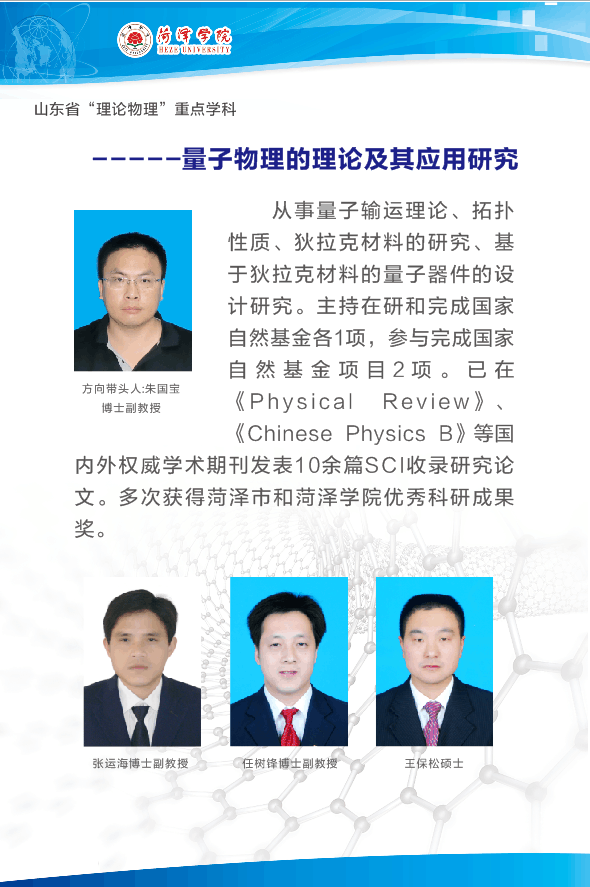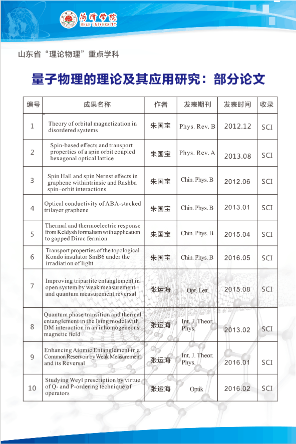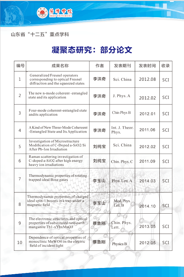 科研成果丰硕。近年来,在《中国科学》、《Phys.Lett.A》、《Opt.Lett.》等国内外权威刊物上发表研究论文300余篇,其中200余篇被SCI、EI收录。获山东省自然科学奖2项;山东省优秀教学成果奖4项;山东高校优秀科研成果5项;伟德国际1946bv优秀科研成果一等奖10余项;获取国家专利7项。学科组成员主持参与国家自然科学基金研究项目5项,主持山东省自然科学基金研究项目5项,山东省教育厅科技计划项目3项,山东省高等学校实验技术研究课题1项,学校科研基金项目10余项。9门课程被评为省级精品课程,1门课程被评为省级一流课程(模拟电子技术),16门课程被评为校级精品课程。