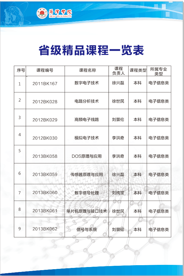 学科专业建设成绩突出。拥有省级重点学科(理论物理)、省级优秀教学团队(物理学主干课程)和省级特色专业(物理学)。设置物理学、电子信息科学与技术(含包括智能物联系统设计与应用、智能终端设计与开发和移动云通信方向)、电气工程及其自动化3个本科专业和应用电子技术、电子信息工程技术、电气自动化技术3个专科专业,在校生近1200人。