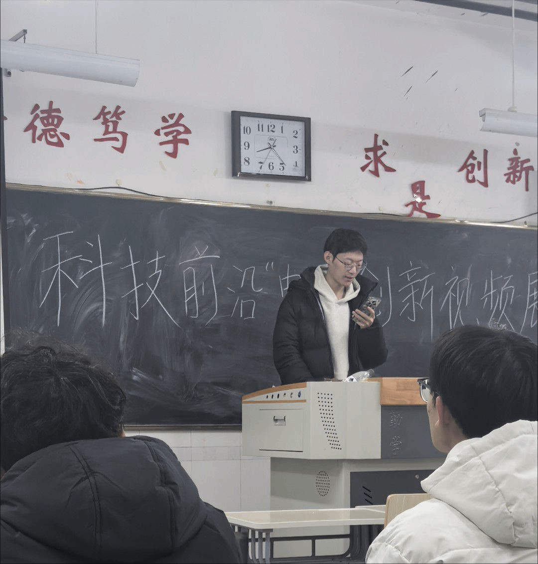 活动中,讲解人播放了一些电子创新成果视频,包括新型电子产品研发成果、电子技术应用实例。他还通过PPT详细讲解了新型量子计算机超强运算能力与独特算法逻辑,智能无人机群在复杂情况下精准的协同控制技术。同学们积极交流创新经验,分享前沿技术在相关领域的应用,如工业自动化、自动化生产线、机器人技术、智能制造等,探讨电子创新思路、技术难点攻克方法以及项目实践中的心得体会。