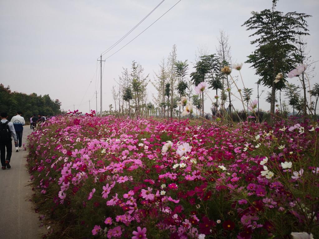 七里河湿地公园始建于2016年4月,是牡丹区筹建的面积比较大的三级湿地公园,目前已基本完工。湿地“一廊、三区、十景”,景色靓丽,层次丰富,仿佛油画里的世界。同学们沿着两岸小路漫步,一边谈笑,一边欣赏湿地美景。大家时而驻足远眺,时而听风细语,时而抚草观花,小桥、凉亭、荷塘、绿地、白鸟、鲜花美景目不暇接,流连忘返。特别是南岸那色彩缤纷的格桑花,幽幽清香,唯美至极。绵长的花海,扑鼻的花香,千花万朵中,留下了同学们激昂的青春……