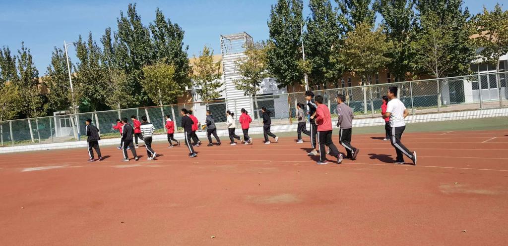为了响应学院倡导体育兴趣小组活动,该班班主任老师制定了一条班规,即要求全班同学以跑步形式坚持锻炼身体,并根据身体基础分成三组。每组要求达到的标准不同,且标准随时间逐渐增加,每学期末都要进行达标测试。今天进行的是第一学期期中测试。在该班体育委员孙志远带领下,同学们进行了热身等准备活动后,测试正式开始。测试员由12名班级田径队员担任,不仅记录圈数和用时,还要求全程保持自然呼吸。此次测试全体同学均能在规定时间内按要求完成5圈(第一学期期中标准)。大部分同学由于入学以来每天坚持锻炼,表示测试很轻松,甚至可以提前达到期末标准。班内三女生成绩更好,均超标完成,其中一名更是提前完成学期标准。此次测试顺利结束。