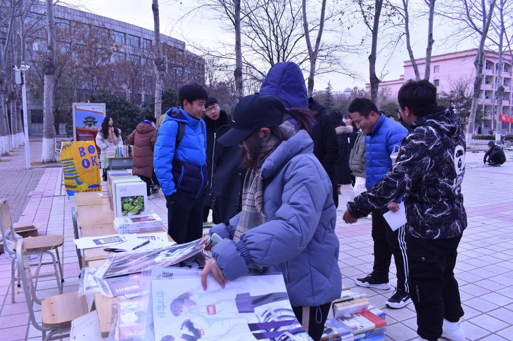 (编辑人员:李敏)为激发莘莘学子的读书热情,构建校园书香工程,增进同学们之间、同学们与书籍之间的情感,培养学生的社会交往能力,促进同学之间的沟通交流,2018年12月8日,9日由我校社团联合会主办的书籍交易会活动在雅苑门口举行。