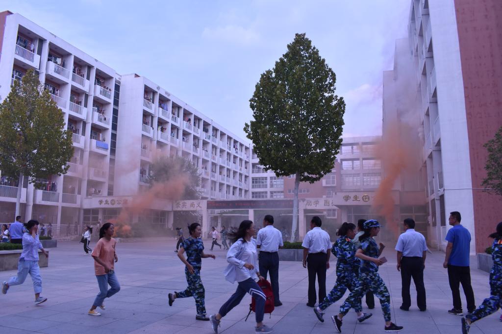 活动伊始,菏泽消防支队的官兵给我校师生讲解了一些消防知识、学校的安全隐患和宿舍容易引发火灾的原因。要求师生明确不要私自拉电线、不许在宿舍使用大功率电器、不准在宿舍吸烟、出门时要断火断电、明确安全通道的路线等常识。紧接着,我院在12号与14号楼进行了火灾灾情模拟:学生们在消防队员的指导下有序地从发生火灾的宿舍楼撤出,学校的消防车及时赶到,营救了被困在二楼的同学。模拟完火灾逃生后,我院师生来到了教学楼M楼前空旷的广场,进行使用灭火器灭火的演练:专业人员在铁盒里倒上汽油点火,在消防人员的指导下舍管阿姨、学生代表、老师等人用灭火器对着火点进行灭火。