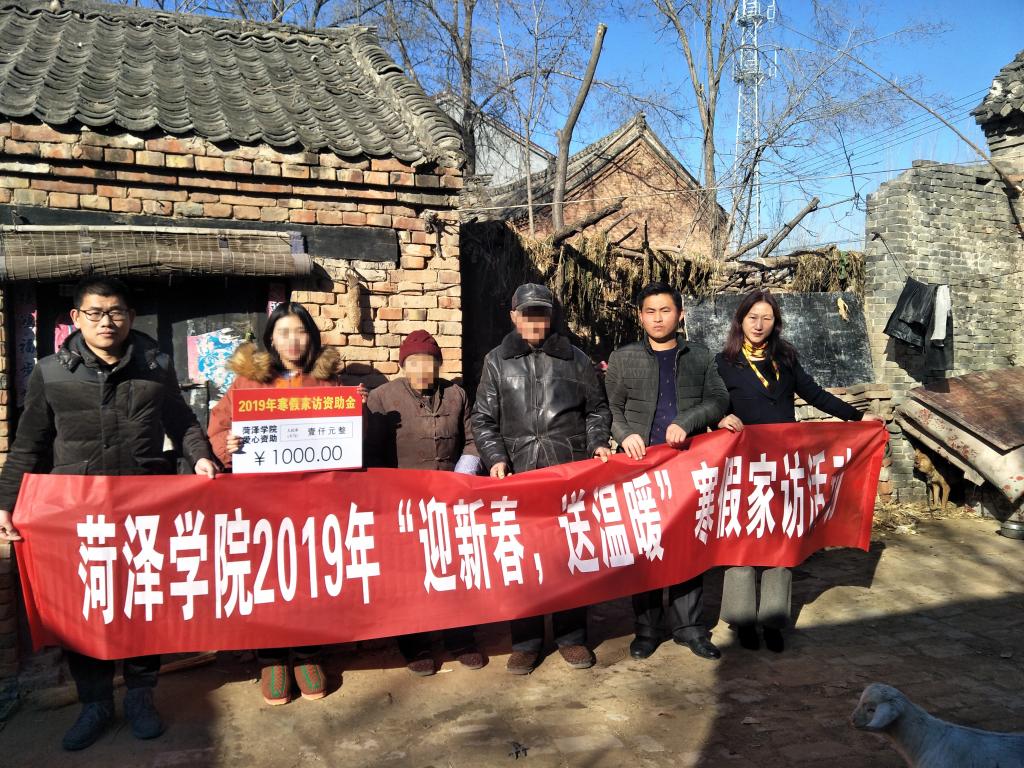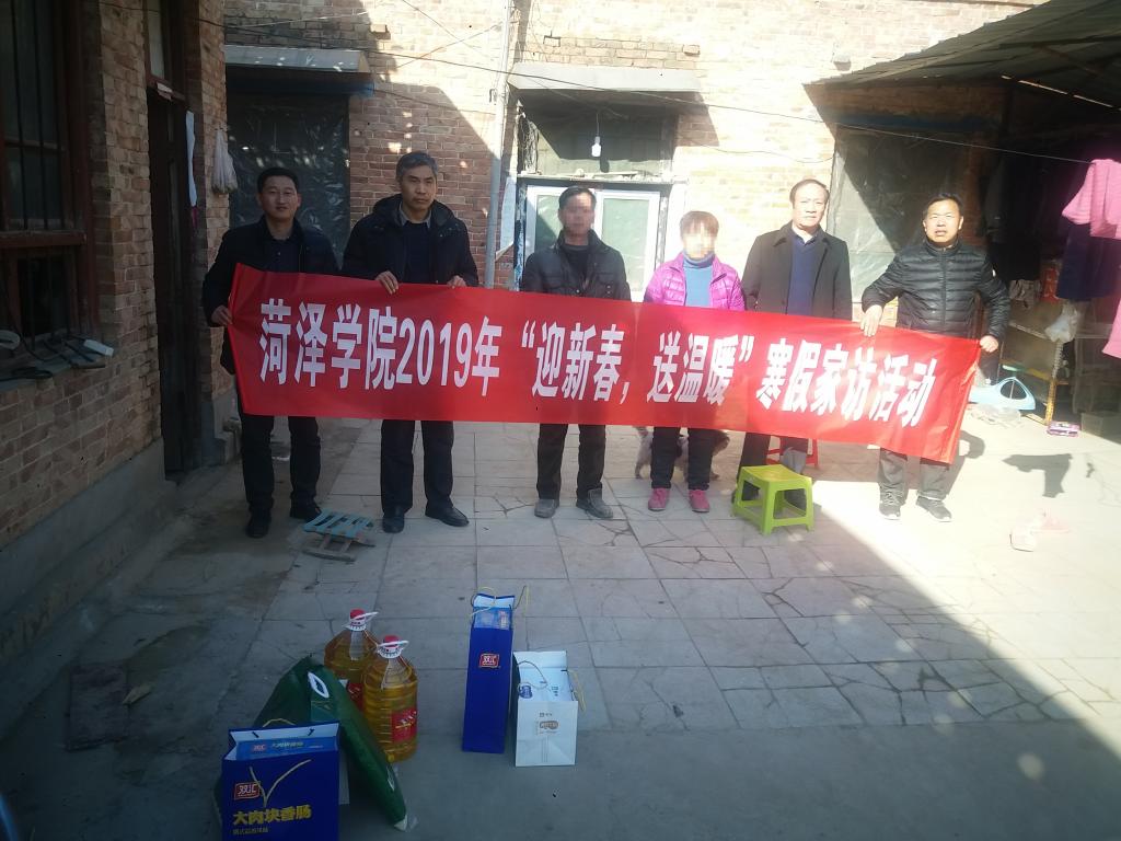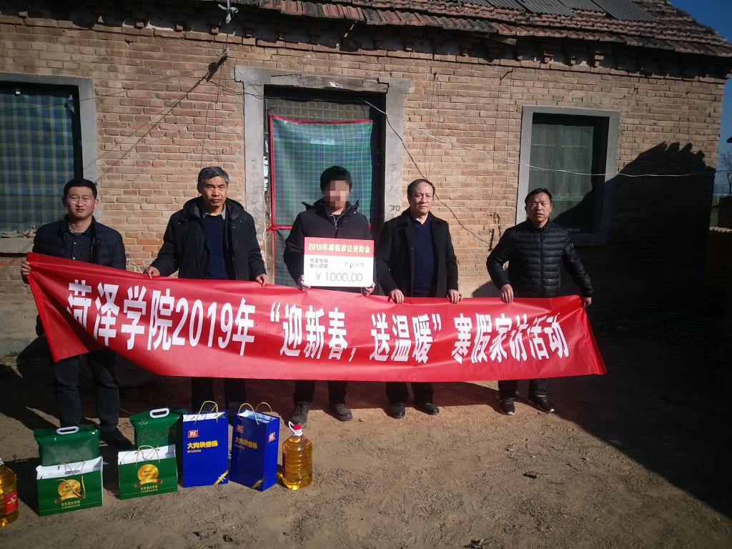 家访中,学院领导和老师给贫困家庭送去慰问品和慰问金,向学生家长讲述学校的基本情况,帮助家长树立正确的教育理念,解决家庭教育方面的一些困惑,增强家长的责任意识和信任度,使家长也主动参与到学院的教育教学管理中来,更有信心地和学院携手共同做好学生的教育工作;切实了解学生家庭经济情况,鼓励学生要明确目标,脚踏实地,通过自己的努力改变命运,实现人生梦想。例如这次受访的曹县王同学,他家是典型的农家房子,父母都是老实本分的农村人,靠着家里几亩地维持生计,家庭收入不稳定,一家人的希望都在孩子身上。交流中,辅导员老师向王同学的父亲介绍了孩子在校期间的优秀表现,学院领导就家长关心的学业和就业问题,给予了详细解答与指导,也对学校“奖助贷补减”等政策进行了介绍,并送上了新春祝福。