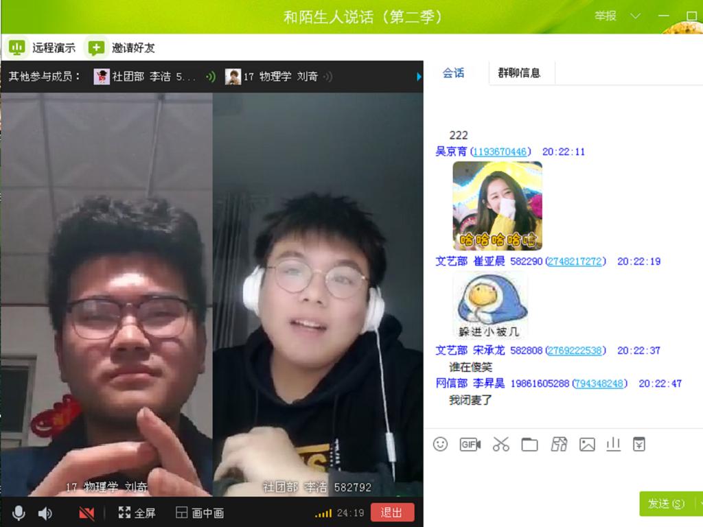 bevitor伟德国际1946特色活动《和陌生人说话》第二季第一期于2月19日晚8:00以QQ群直播的方式进行线上开展。本期活动邀请到了bevitor伟德国际1946学工办主任任雪莲老师,辅导员张明华、吴京育、贾晓蒙老师以及学生会部分主席团成员、部长参加。