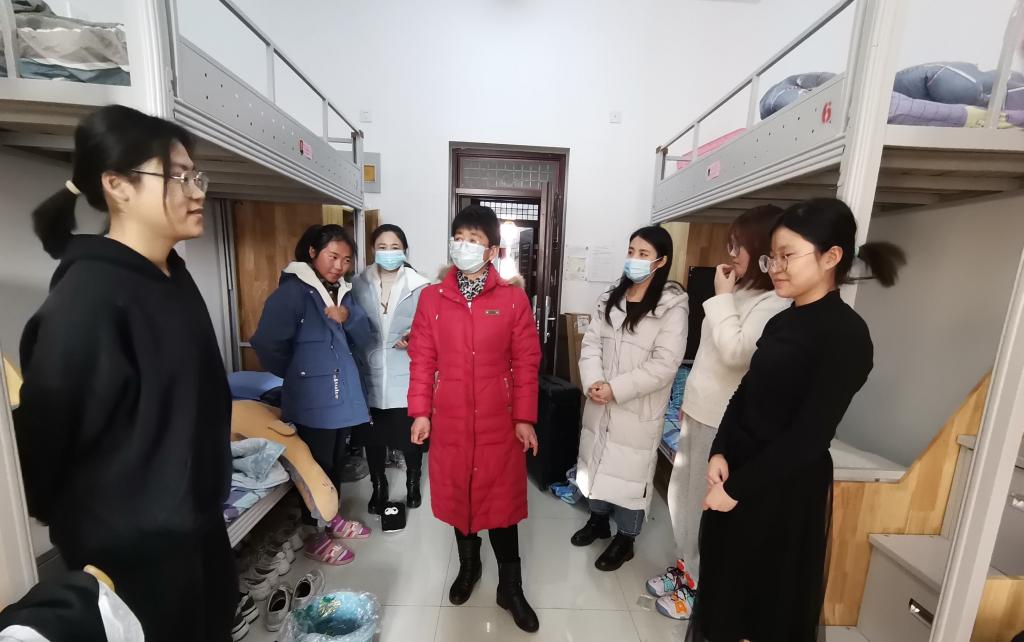 新学期伊始,为更好了解我院学生在校的住宿条件和生活情况,给同学们创造一个良好的生活环境,3月1日下午学工办主任任雪莲、辅导员王影、董双双深入学生宿舍,走访看望第一批返校学生。