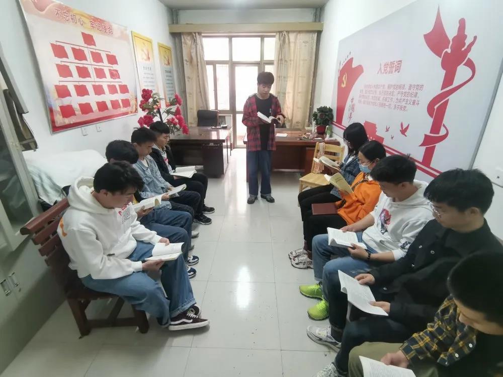 会上,全体学生党支部成员重温了入党誓词,集中学习了《论中国共产党历史》《毛泽东 邓小平 江泽民 胡锦涛 关于中国共产党历史论述摘要》等。领学人姜志诚指出:学生党员认真学习四史,高度重视,提高思想站位,立足实际、守正创新,高标准高质量完成学习教育各项任务,撰写心得体会。他要求,作为学生党员,要以更高于其他学生的标准严格要求自己,深入学党史,知党情,跟党走,努力做知责于心、担责于身、履责于行的合格党员。