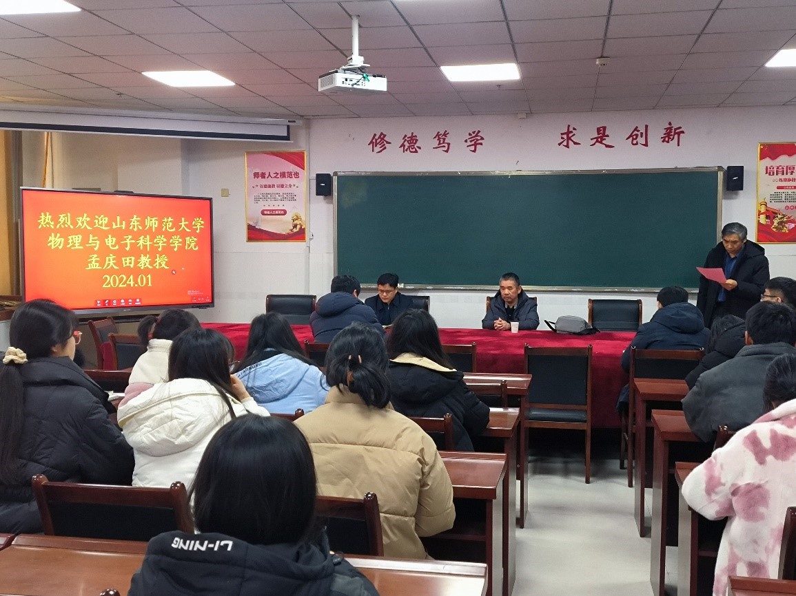 1月7日下午,应bevitor伟德国际1946邀请,山东师范大学物理与电子科学学院博士生导师孟庆田教授在综合实验楼W207做了题为《从分子动力学的角度研究阿妙激光脉冲的产生机制》的学术报告。bevitor伟德国际1946院长徐兴磊教授、副院长张运海教授及全院师生代表共计50余人聆听报告,报告会由徐兴磊院长主持并代表学院致欢迎词。