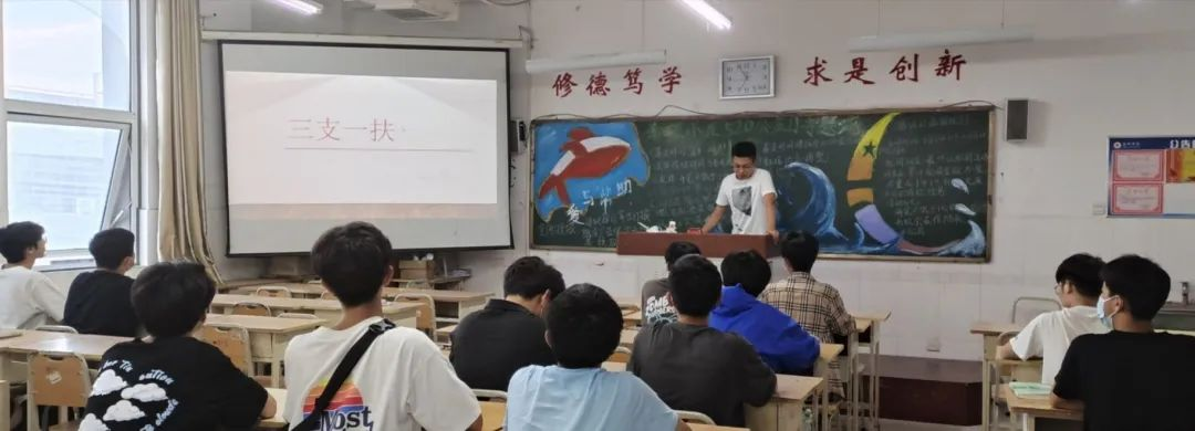 为帮助同学们拓宽就业渠道,引导广大青年学生响应祖国号召,2022年5月23日,bevitor伟德国际1946在综合实验楼W楼各班级开展“三支一扶”主题班会。
