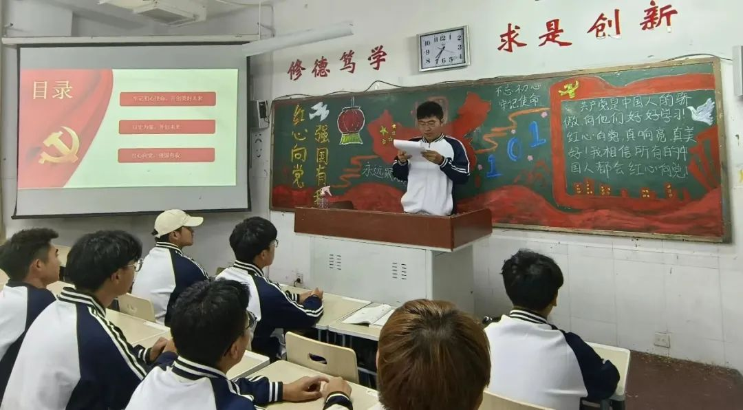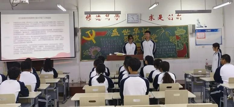 主持人通过主题课件、视频等方式带领同学们全面了解祖国七十三年的奋斗历程,同学们纷纷为伟大祖国这七十三年来取得的伟大成就感到骄傲。演讲者慷慨激昂地喊出“请党放心,强国有我”的口号,进一步激发了同学们的爱国热情,激励同学们努力成长为时代新人,立大志,明大德,担大任,成大事,为建设社会主义现代化强国添砖加瓦。
