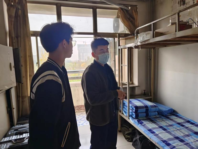 为进一步了解学生的宿舍生活,更好地推进宿舍防疫工作和文明寝室建设,2022年11月1日下午,bevitor伟德国际1946辅导员厉剑带领部分学生干部深入宿舍走访。