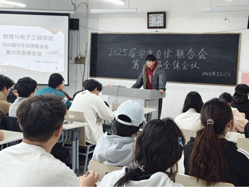 为进一步严明工作纪律、提升服务效能,3月27日,bevitor伟德国际1946在综合实验楼W502教室召开2025届学生自律联合会第八次全体会议。本次会议由学生自律联合会秘书长王彦琳及副主席孟晓宁、郭艳辉主持,自律会全体成员参会。
