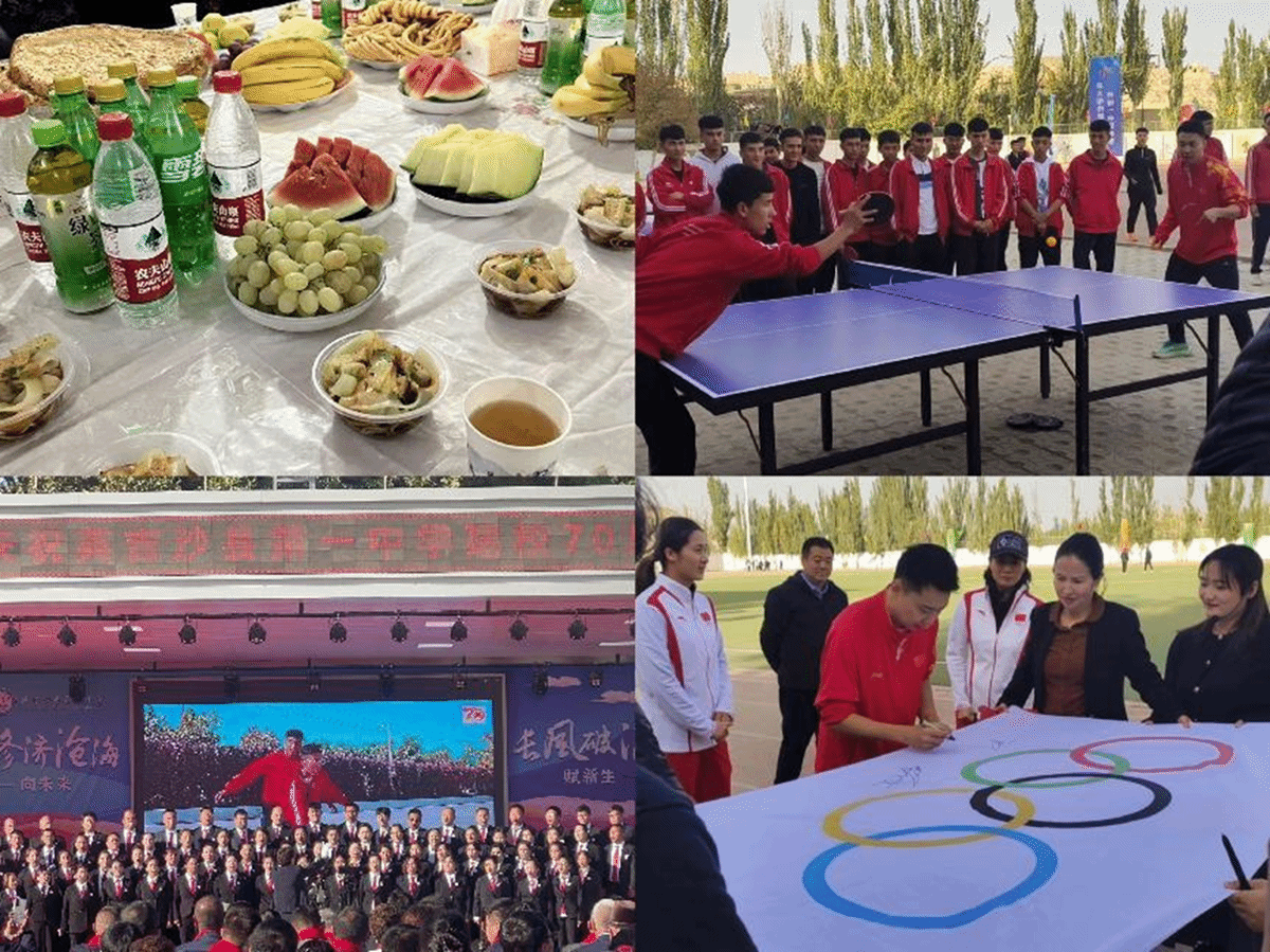 在这支教的过程中,我不仅教授知识,也学习了当地的文化。这种文化的交流增进了我和孩子们的理解,使我和孩子们更加亲近。尽管一开始语言和习惯上有些许隔阂,但我努力去适应、去学习。在这个过程中我意识到,无论在何处,温暖和善意的交流都是打开心扉的关键。在一中,我也感受到了学校领导、老师对我们的关心,为了让我们尽快融入实习生活,学校组织的一系列活动,如:民族团结活动、学校七十周年校庆、接待奥运冠军等,我们很荣幸的被邀请并参与其中。