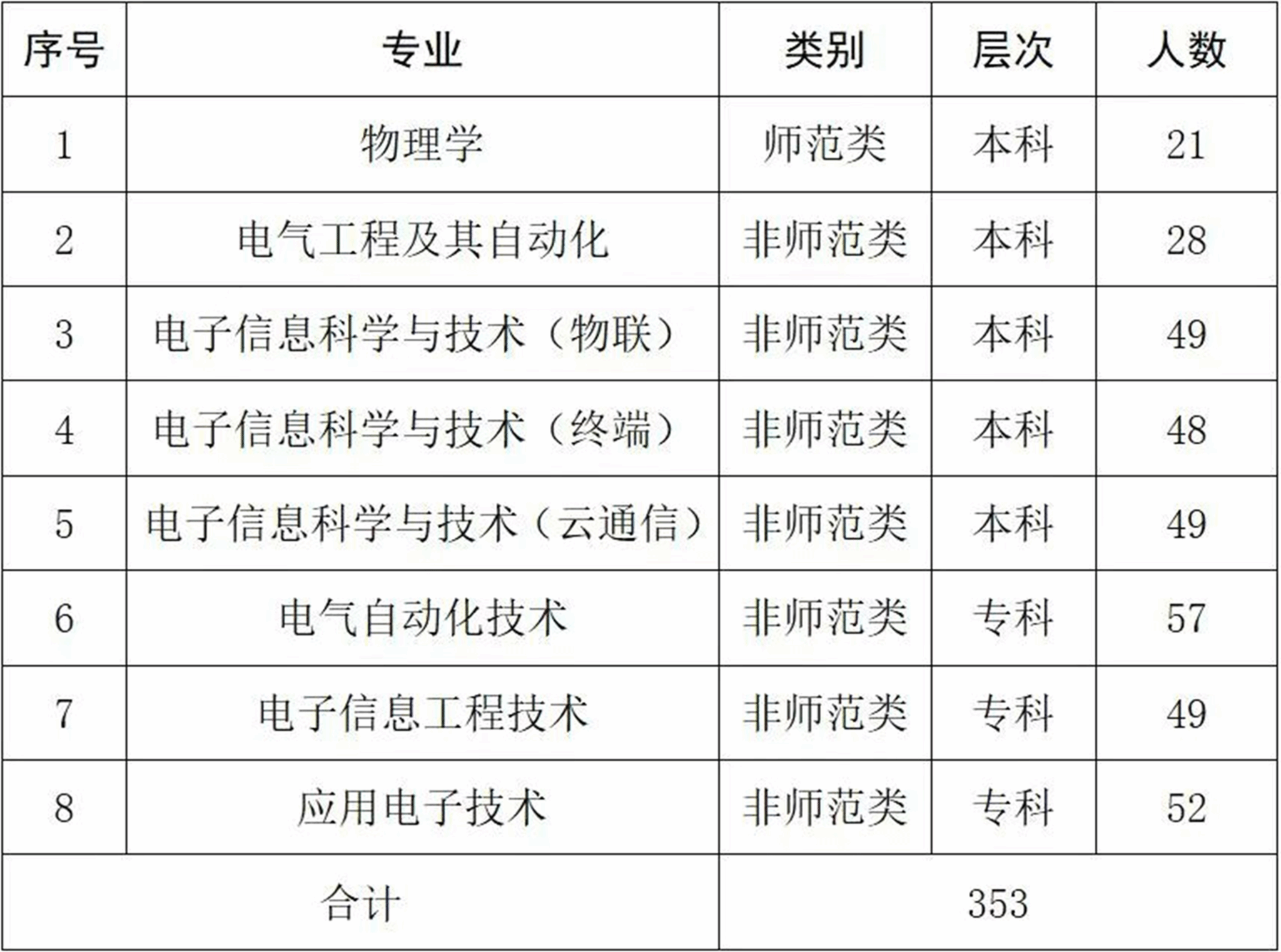 bevitor伟德国际1946 2025 届毕业生共计 353 人,其中本科毕业生 195人,专科毕业生 158 人,毕业生共涉及到物理学(本)、电气工程及其自动化(本)、电子信息科学与技术(本)、电气自动化技术(专)、电子信息工程技术(专)、应用电子技术(专)等专业,毕业生具有专业动手能力强、理论知识丰厚、吃苦耐劳、认真负责的优良品质,能够胜任电气、自动化、电子信息、物理专业教学等多方面工作。