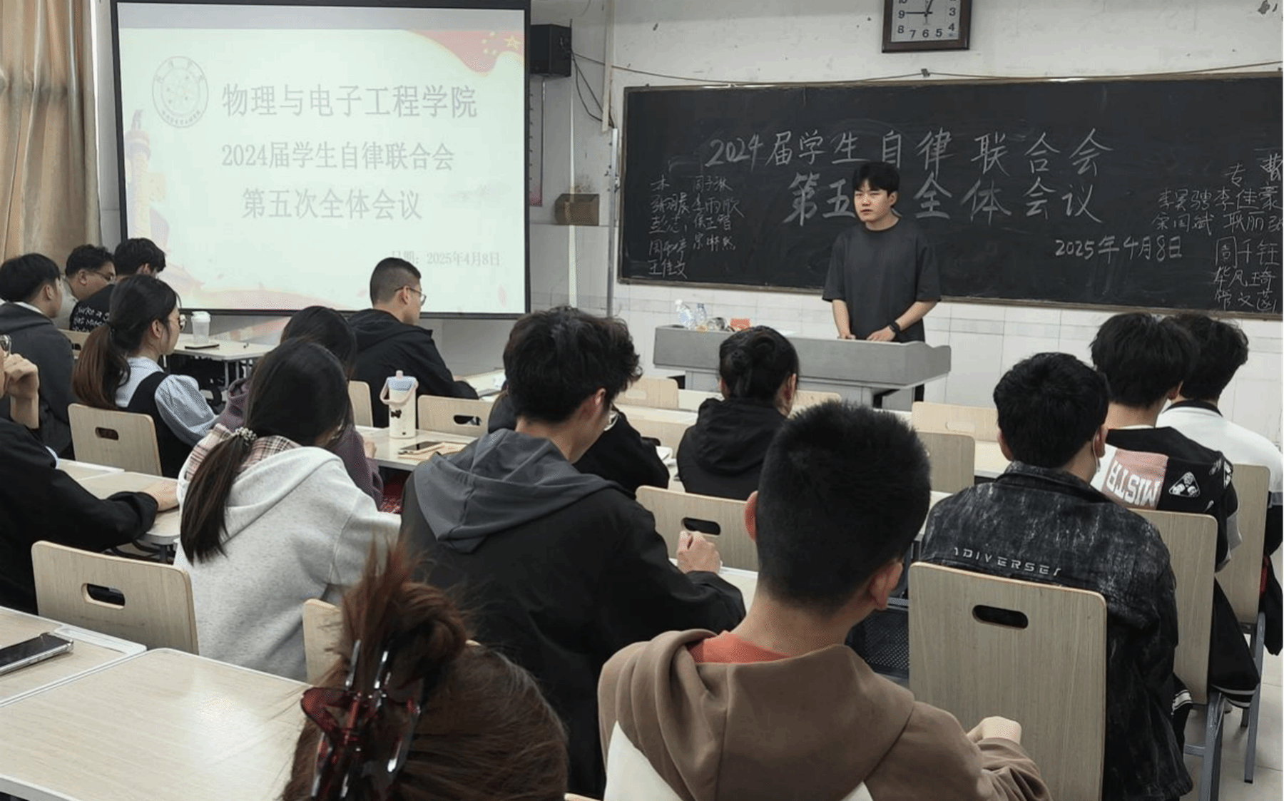 为增强成员综合能力,夯实组织发展根基,4月8日,bevitor伟德国际1946在综合实验楼W502教室召开2024届学生自律联合会第五次全体会议。会议由学院学生自律联合会主席戴竣彦主持,辅导员李晨出席会议,全体学生会成员参加。