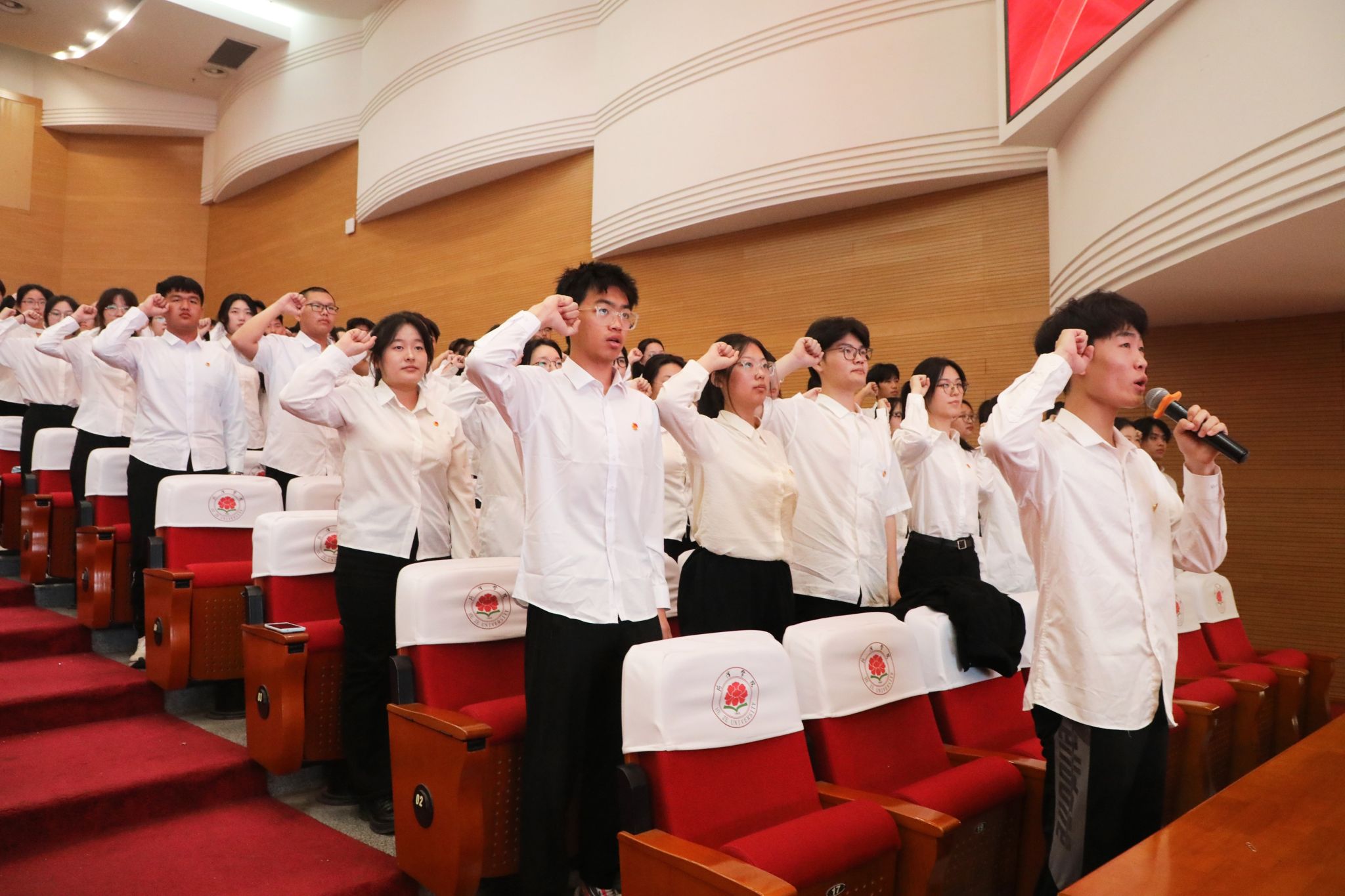 主题活动期间,2025年新团员代表在团旗下庄严宣誓,重温入团誓词,铿锵有力的誓言彰显了新时代青年“请党放心,强国有我”的坚定信念。