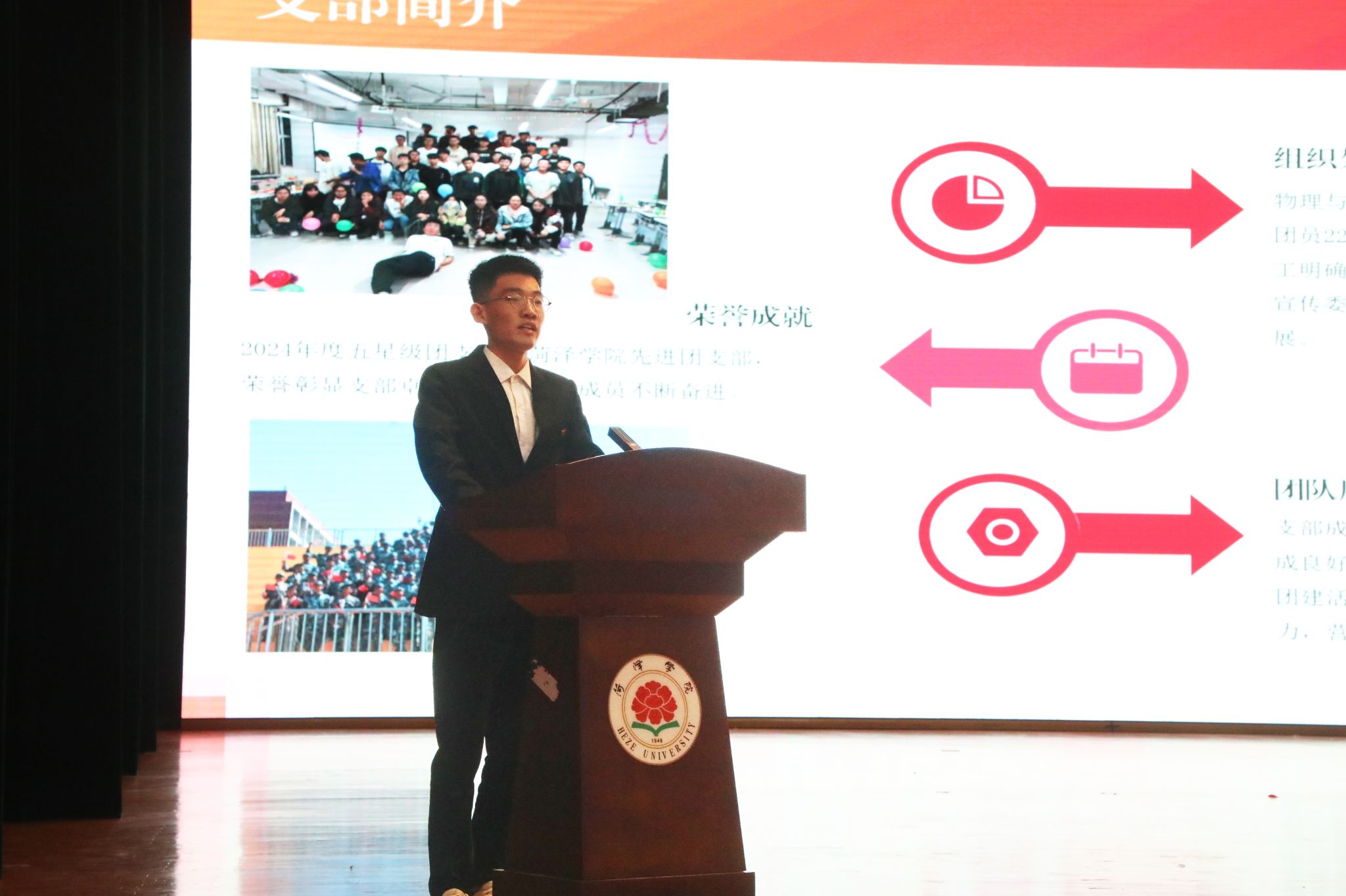 大会在庄严的国歌声中拉开帷幕。校党委书记黄富峰发表致辞,他代表学校党委向受表彰的先进集体和优秀个人表示热烈祝贺,并对下一步做好我校青年工作提出希望和要求。一要锤炼品格,做对党忠诚的菏院青年。要以思想铸魂,深学党的创新理论,从习近平新时代中国特色社会主义思想中汲取智慧和力量,补足精神之“钙”,筑牢信仰之基。二要勇挑重担,做本领过硬的菏院青年。要以青年发展为中心,主动担当作为,广泛凝聚青年共识、激发青年活力。要牢固树立“终身学习”理念,践行“学以致用”的优良学风,为学校建设高水平应用型大学添砖加瓦。三要开拓创新,做奋勇争先的菏院青年。要聚焦新时代创新需求,持续深化“创青春”“挑战杯”等“青”字赛事的校园影响力,加强科创类社团建设,激发青年创新热情,以创新之力为国家发展、民族复兴贡献青春智慧。
