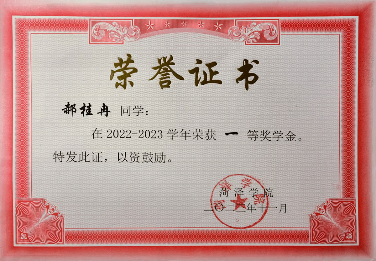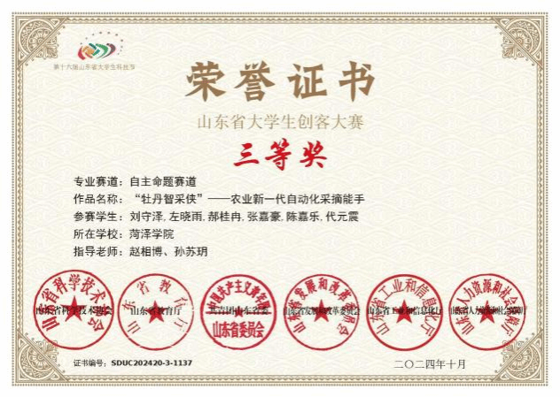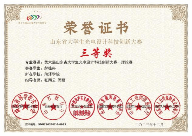 2023年12月,获第六届山东省大学生光电设计科技创新大赛——理论赛三等奖;