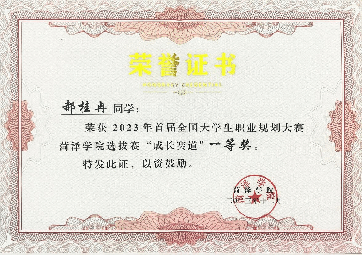 2023年12月,获2023年首届全国大学生职业规划大赛伟德国际1946bv选拔赛“成长赛道”一等奖;