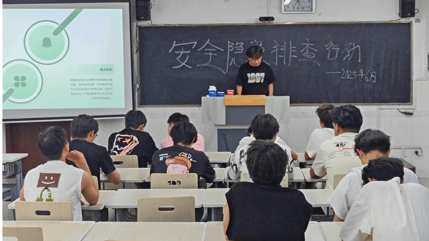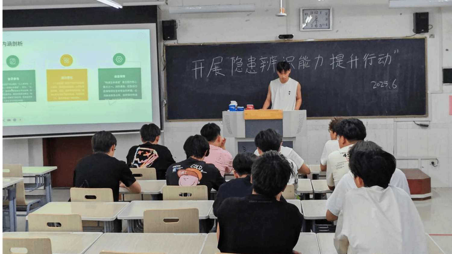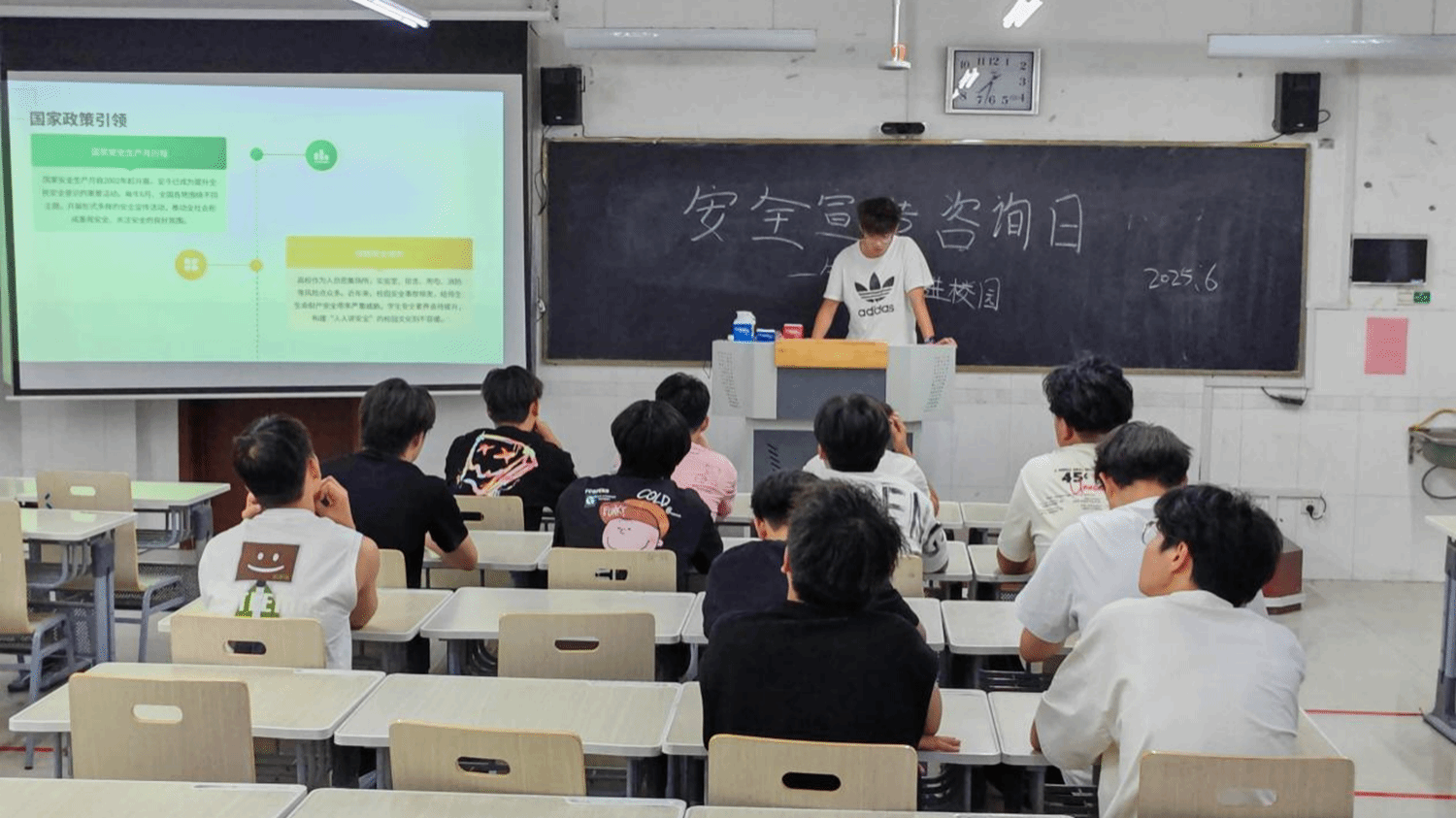 活动中,宣讲同学以“人人讲安全、个个会应急——查找身边安全隐患”为主题,重点解读了《安全生产法》《山东省学校安全条例》及其实施细则的核心要求,强调掌握安全法规是落实主体责任、提升防范能力的基础,并向同学们普及消防安全、交通安全、食品安全、防溺水、防欺凌、网络信息安全等知识,推动安全知识入脑入心,有效提升了同学们的应急处置能力。