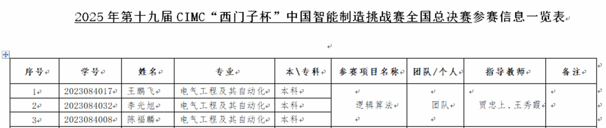 8月15日,2025年CIMC“西门子杯”中国智能制造挑战赛全国总决赛在太原理工大学拉开帷幕。经过五天的激烈角逐,我院王鹏飞、陈福麟、李光旭代表队获得全国总决赛一等奖,实现历史性突破。