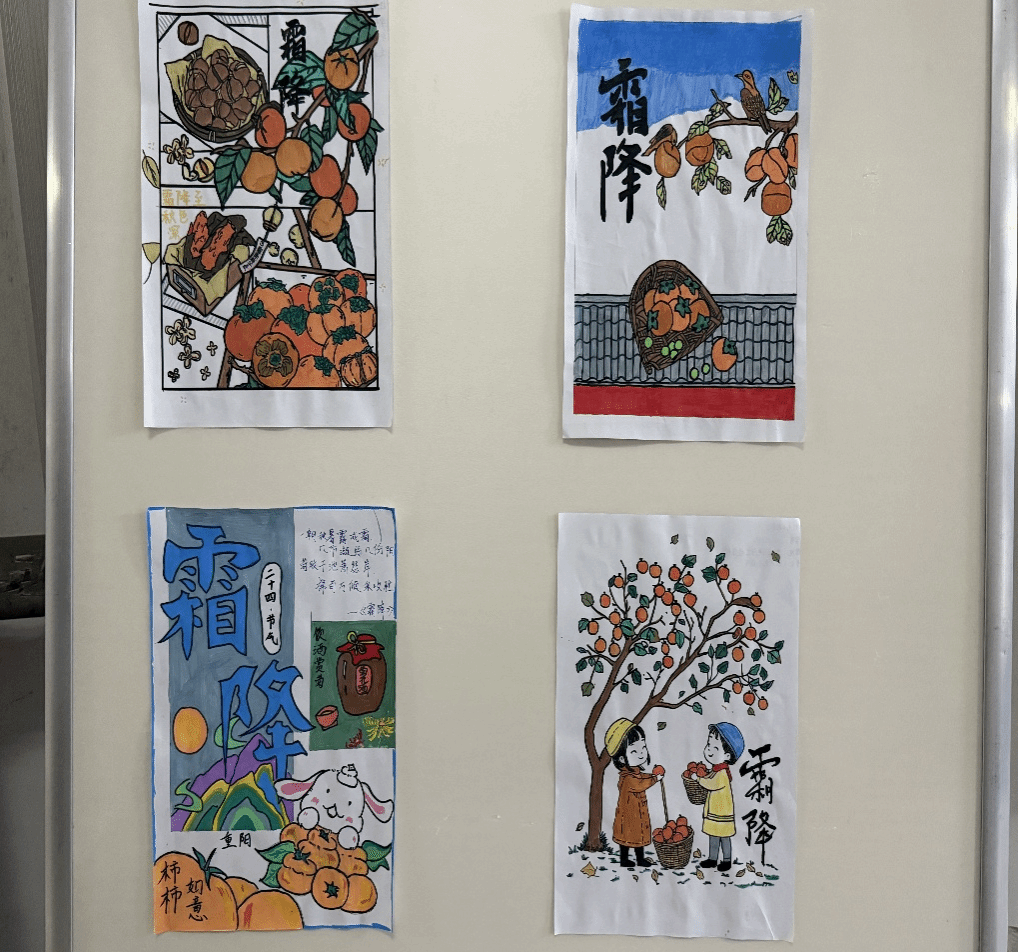 活动中,同学们围绕 “霜降赏月,情暖校园”的主题,用灵动的画笔勾勒霜降月夜的校园景致,用真切的言辞诉说对节气文化的感悟,展现出传统节气与校园生活交融的别样韵味。每一幅创作都承载着大家的巧思与温情——有人以水墨晕染出覆霜草木与皎洁明月,有人用文字记录月下师生相聚的温馨点滴,传递出对霜降节气的喜爱与对校园生活的热爱。这些作品将节气之美与校园温情相互融合,增强了活动的感染力与亲和力,在校园中营造了“品味传统节气、共抒校园暖意”的浓厚氛围。