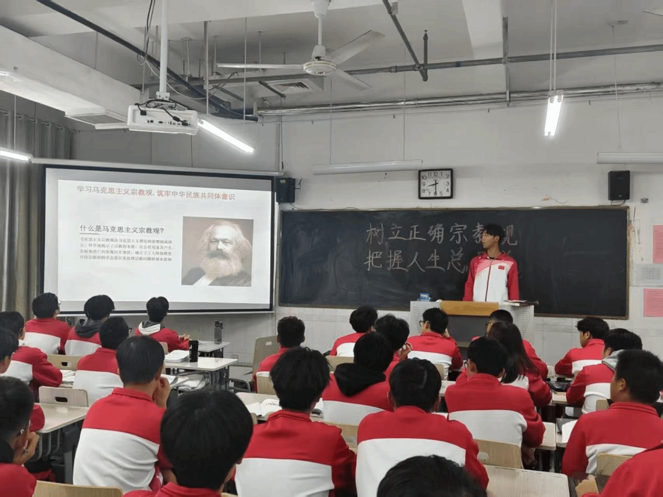 讲座上,主持人们系统阐述了马克思主义宗教观的核心观点、现实意义及其在中国的发展,深入解读其丰富内涵,并强调了新时代大学生树立科学理性宗教观的重要性。讲座中指出,青年学生应自觉学习马克思主义宗教观,坚持科学精神,正确认识宗教问题,努力成长为有清醒头脑和理性判断力的时代新人。现场同学反响热烈,围绕相关话题展开深入讨论,不仅有效深化了同学们对马克思主义宗教观理论内涵的理解,更帮助大家掌握了科学分析宗教问题的方法。