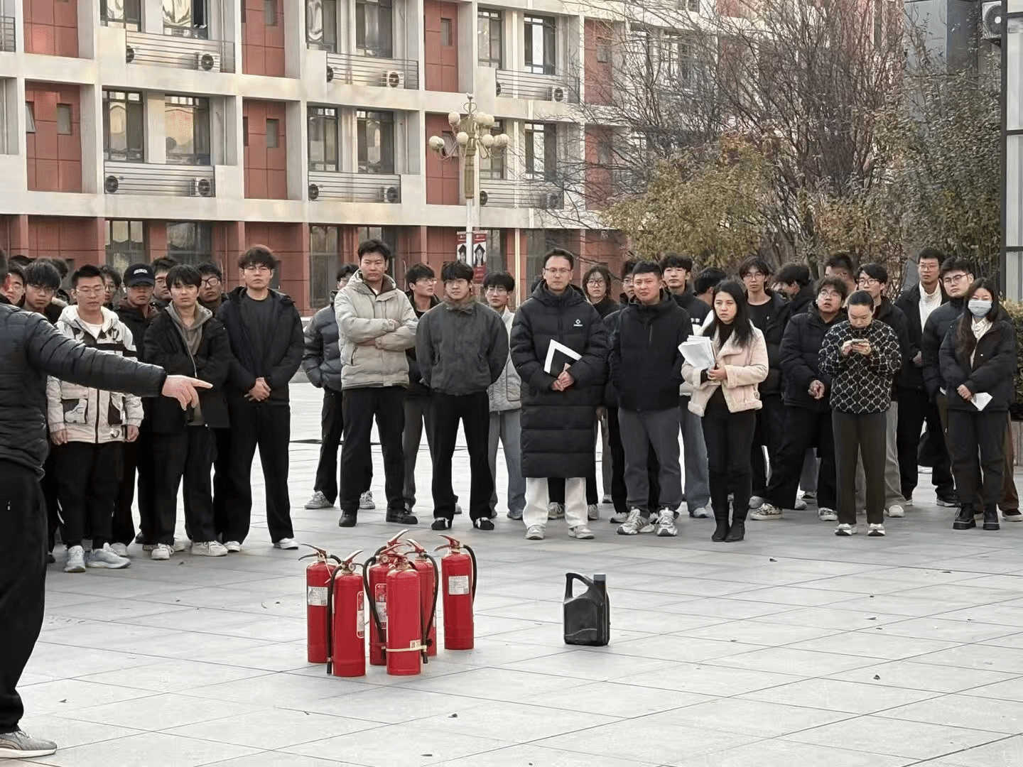 本次活动分为知识宣讲、演练逃生、灭火实操三大环节。在宣讲环节,负责人向同学们讲解火灾预防常识、火场逃生自救技巧以及消防器材正确使用方法,明晰校园内重点消防隐患区域。在演练环节,当火情警报响起,学生在老师引导下迅速用湿毛巾掩住口鼻,沿着指定疏散路线向楼前空旷的安全集结点转移。过程中,无拥挤、推搡现象,学生们严格遵守疏散纪律,全员在规定时间内安全疏散至集合点。在实操环节,消防员详细讲解灭火器分类及使用要点,演示“提、拔、握、压”四步操作法。现场学生踊跃参与,在老师的指导下逐一完成灭火实操,切实掌握了灭火器使用技能。