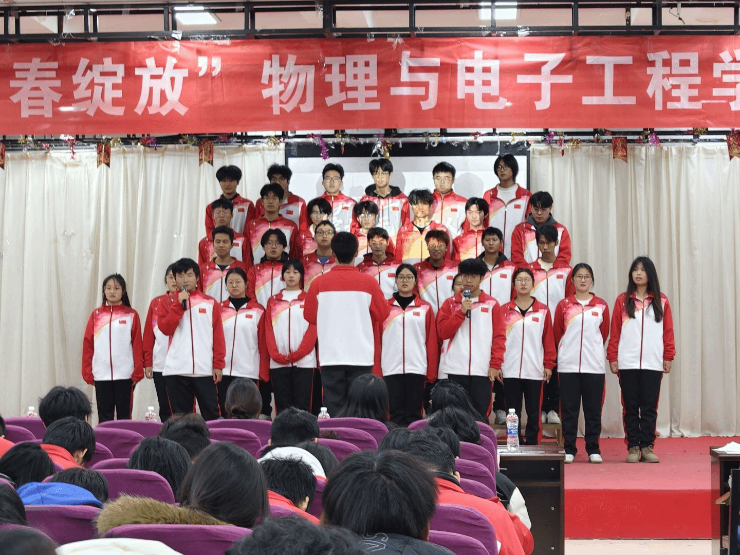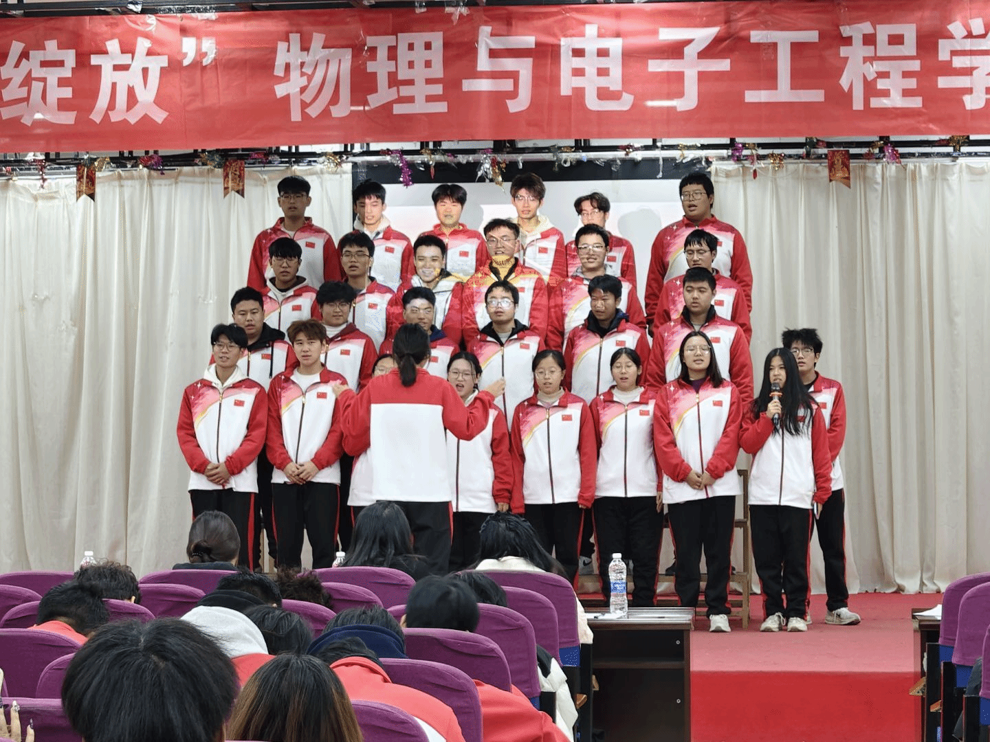 为丰富文化生活,提升团队凝聚力,展现积极向上的精神风貌,12月8日,bevitor伟德国际1946“和声飞扬,青春绽放”合唱比赛于体育馆报告厅成功举办。学院党委副书记祝清森、辅导员与2025级同学齐聚一堂,在激昂旋律中共展青春风采。