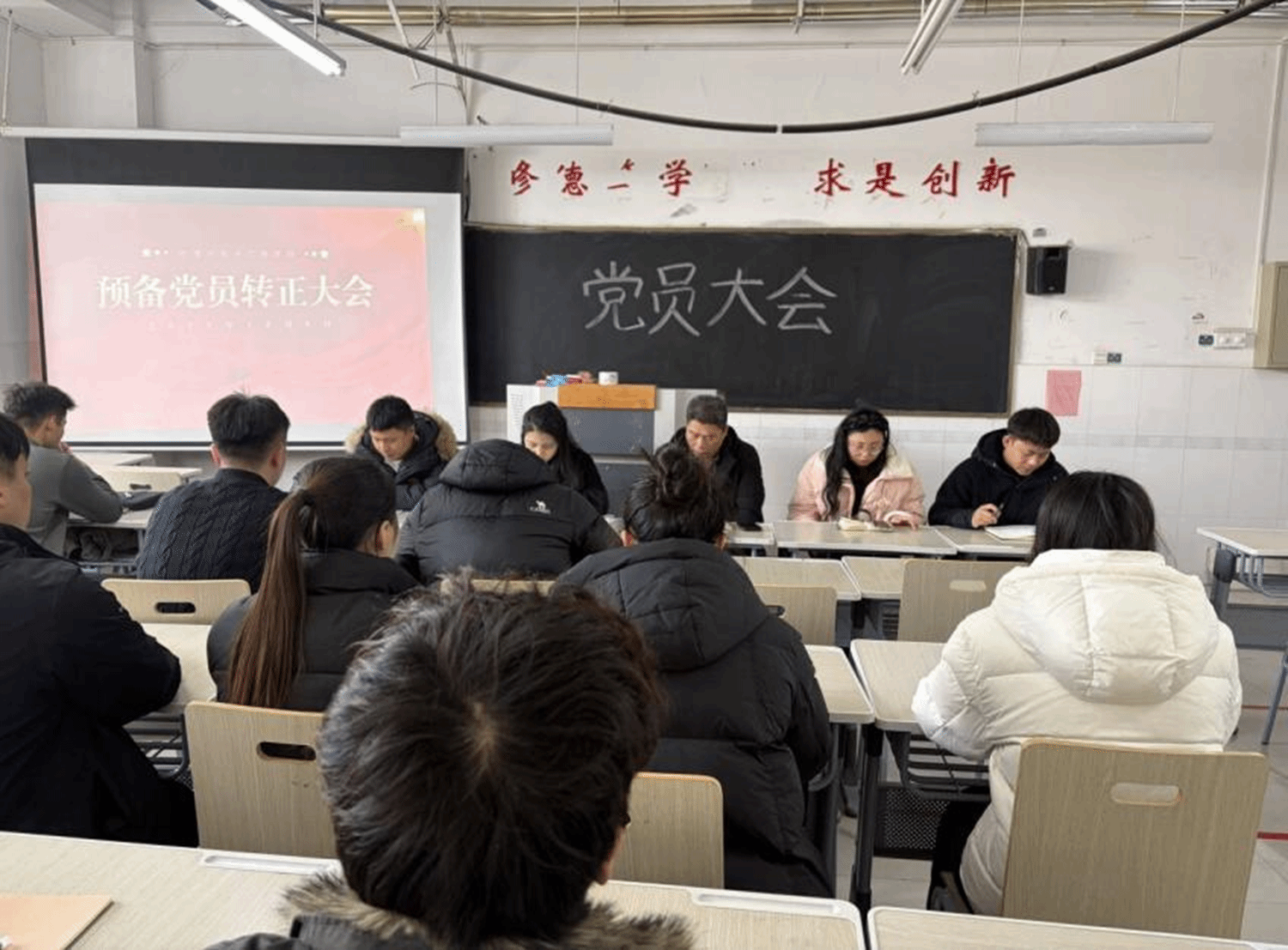 会议严格遵循党员发展流程有序推进。在党员转正大会上,预备党员依次汇报了预备期间的思想成长与实践表现,大家紧扣“思想淬炼”与“行动落实”两条主线,系统梳理了在理论学习、支部活动参与及先锋作用发挥等方面的显著提升,并坦诚剖析了自身存在的不足。经支部大会充分讨论表决,一致同意上述同志按期转正,支部书记现场宣读了决议。转正党员们郑重承诺,将以此次转正为崭新起点,持续筑牢信仰之基,以更为纯粹坚定的信念锚定初心坐标,以更富主动性的担当作为践行使命诺言,时刻以高标准严格要求自己,切实发挥党员先锋模范作用,为学院发展和党的事业贡献力量。