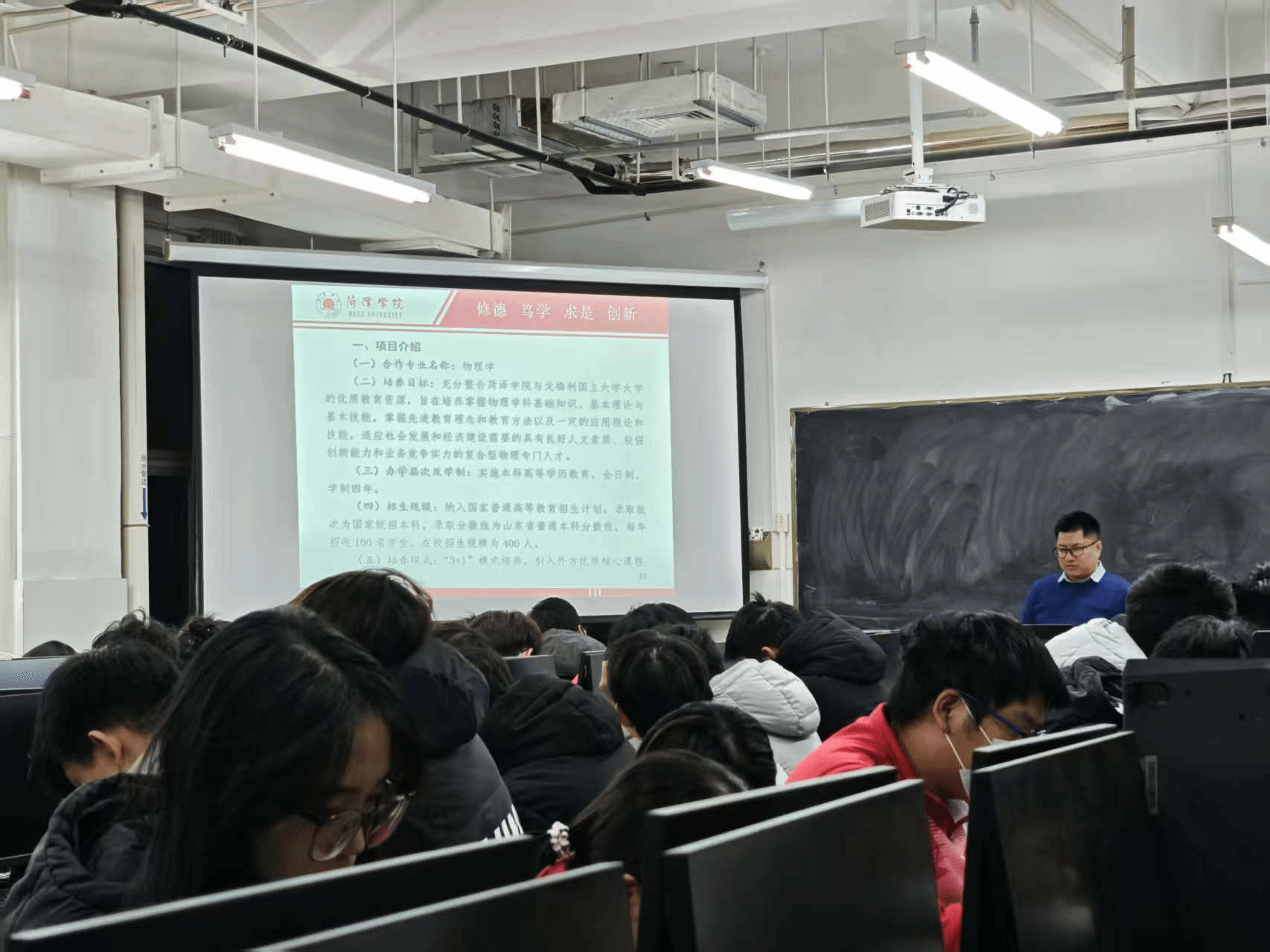 李玉山老师首先对人才培养方案进行了全面细致的解读。他重点阐述了培养目标与毕业要求,课程体系与教学安排,通识课程、学科基础课程、专业核心课程及实践教学环节的学分要求等问题。他还深入介绍了物理学专业的特色发展模块,为学生个性化发展提供清晰指引。