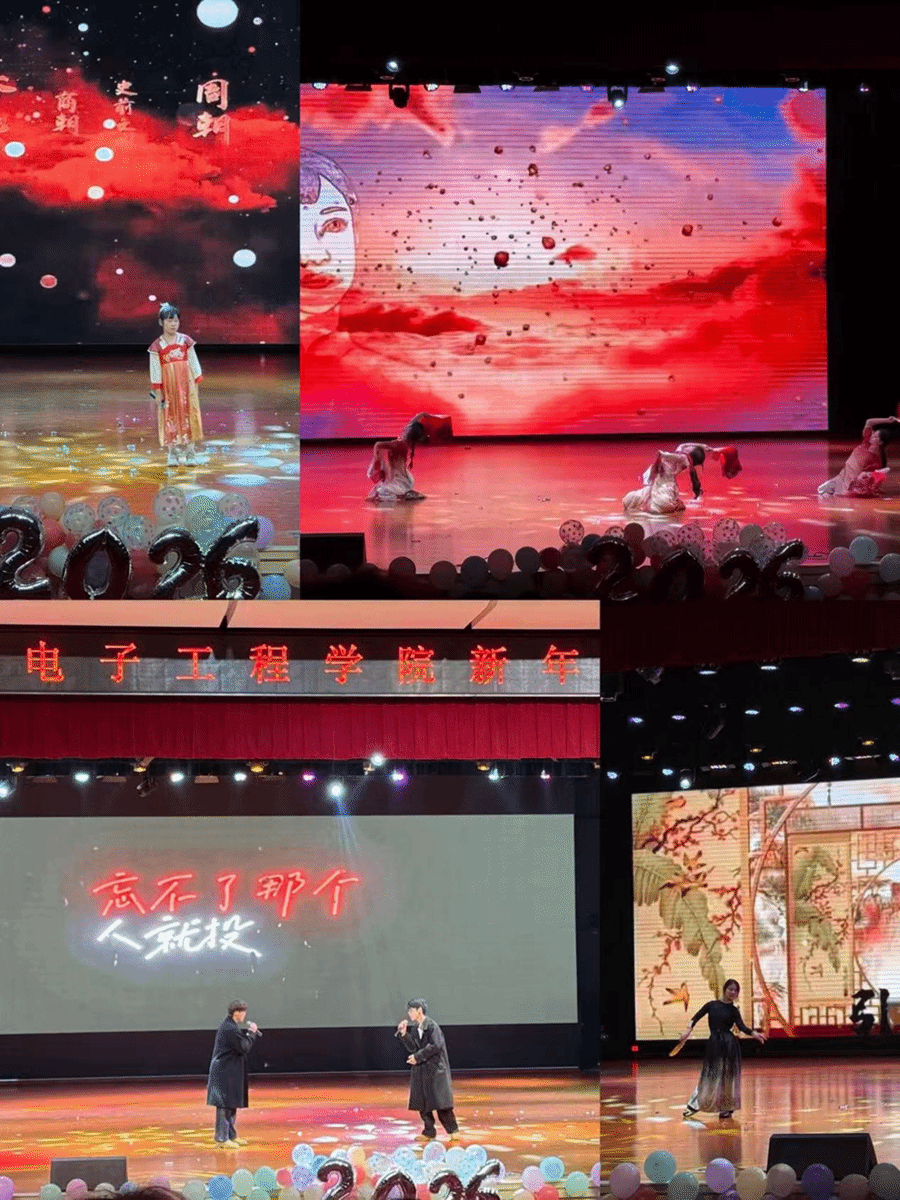 晚会中场的颁奖环节庄重而热烈,在师生们的注目与掌声中,各位老师依次为获奖集体与个人颁奖。“学生优秀代表”在学业成绩与综合素质等方面表现突出,成为物电学子的榜样;“优秀班级”学风严谨、团结进取,体现了集体的凝聚力与向心力;“优秀宿舍”则以和谐的氛围、整洁的环境与良好的学风荣获表彰;“越野赛优秀代表”更以坚韧不拔、永不言弃的体育精神,赢得了全场的热烈掌声。这些荣誉不仅是对同学们过往努力的认可,更是对未来继续奋进的鞭策。