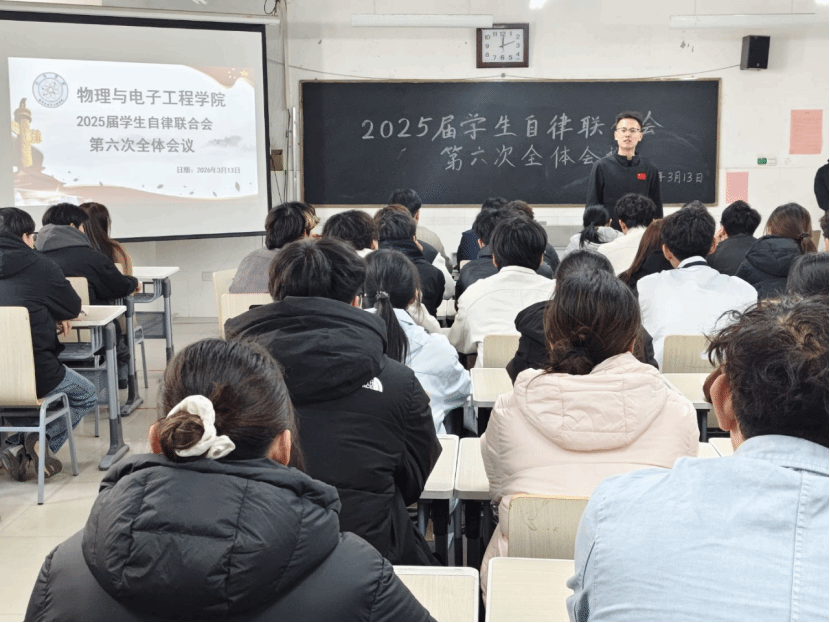 为进一步严明工作纪律、提升服务效能,3月13日,bevitor伟德国际1946在综合实验楼W502教室召开2025届学生自律联合会第六次全体会议。辅导员李晨出席此次会议,2025届学生自律联合会主席刘招锦主持,学生会全体成员参会。