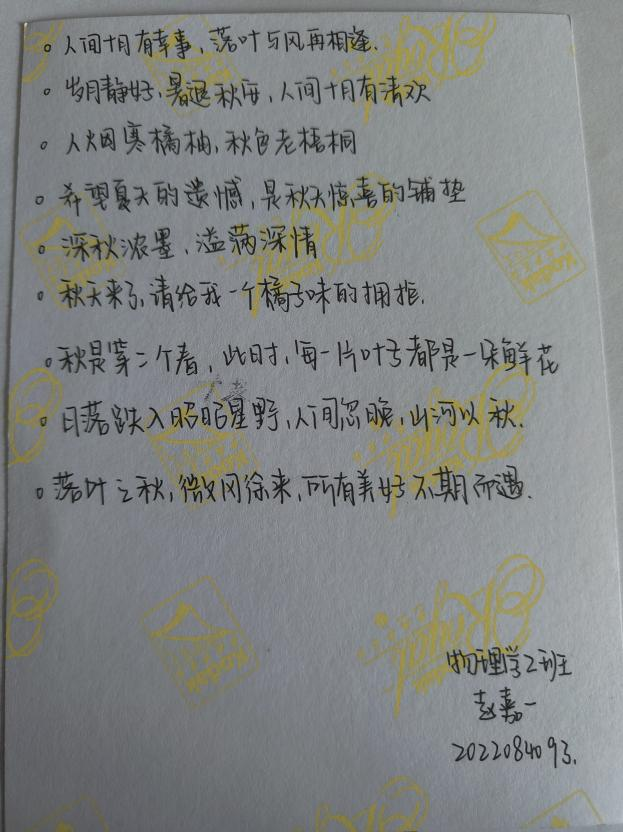 同学们积极寻找发现校园中蕴含秋意的美景,通过拍摄并打印作品,向人们展示校园的美丽。一张张精妙绝伦的秋景图,生动展现了秋日菏院的魅力,将美丽的秋景定格在照片中。作品空白处写下的优美文案,表达了同学们对校园秋景的热爱。
