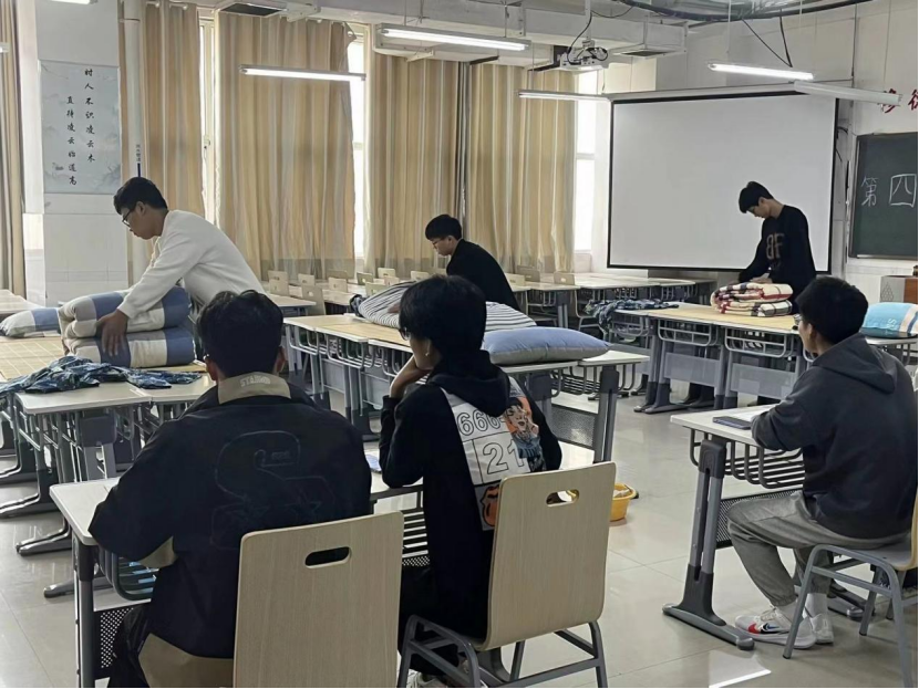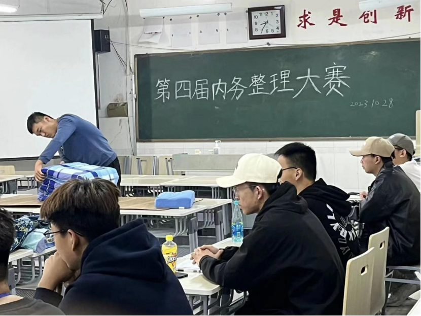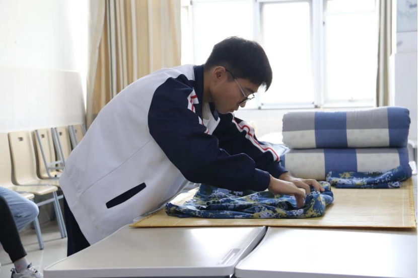 在比赛中,同学们迅速将被子铺、折、捏、捋,一丝不苟,在五分钟内整理好被子及军训服。赛后,统分员依照分数公布获奖名单。最后,针对比赛中出现的问题做出总结,并倡导大家在生活中养成良好的生活习惯。