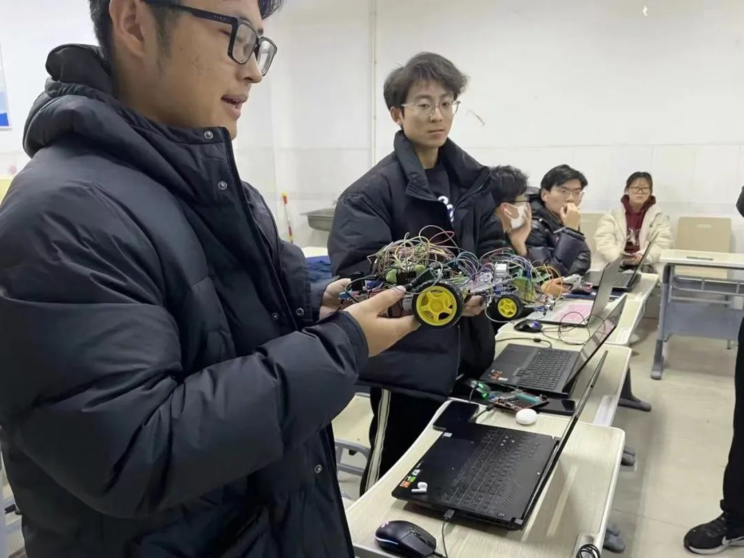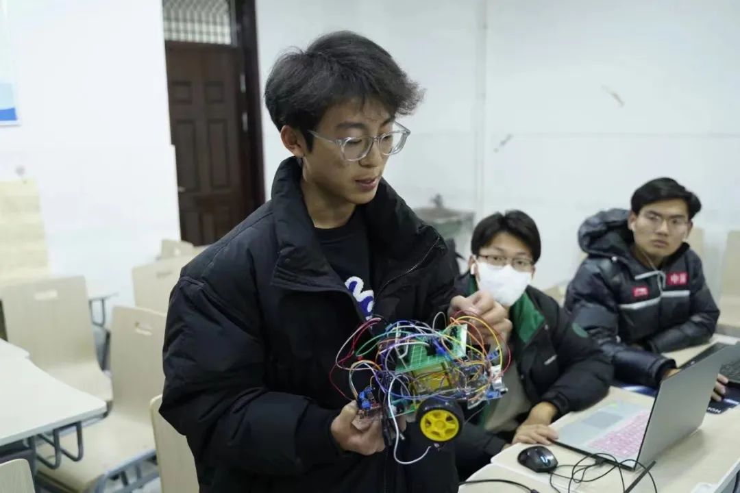 接下来,由两位社团成员基于80c51芯片的单片机智能车讲解了红外循迹模块、红外避障模块、超声波模块、温湿度传感器模块、电机驱动模块的使用环境和具体作用,以及操作所需的编程语言。其他活动参与者认真听讲,加深了对python编程的了解和兴趣。