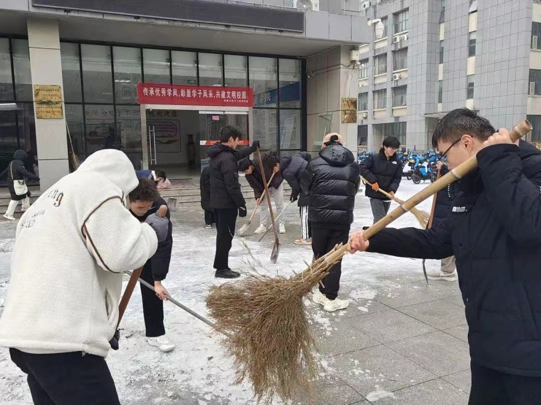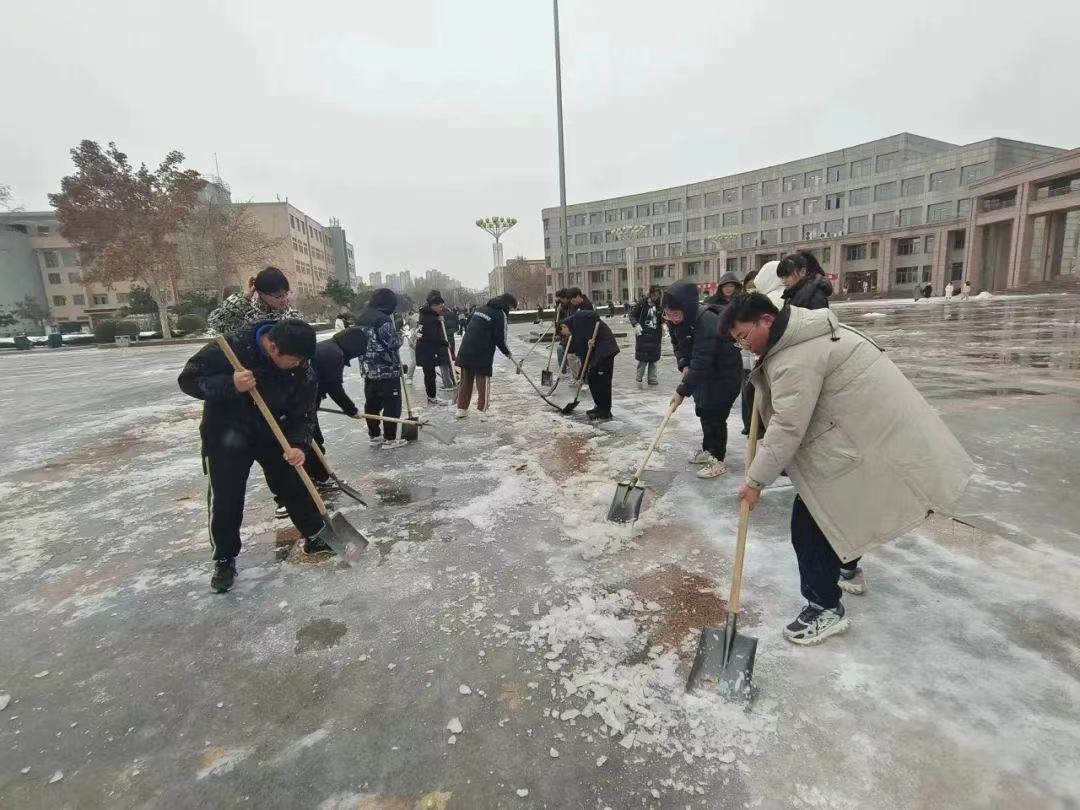 活动期间,bevitor伟德国际1946的老师和学生们积极响应号召,组成临时“扫雪除冰队”,对路面积雪和冰进行了紧急处理。他们挥舞着铁锹、扫把等工具,不怕脏、不怕累,全力以赴地投入到扫雪工作中。他们或扫或铲,配合默契,干劲十足。在大家的共同努力下,校园内的道路逐渐变得干净整洁。