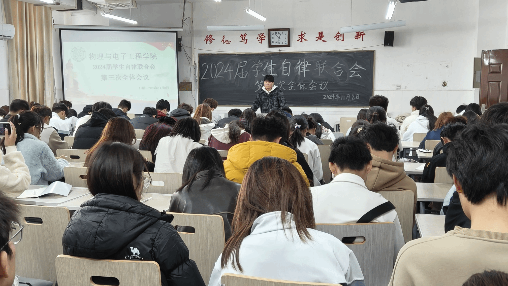 为了强化学生的责任意识,规范队伍发展,充分发挥学生自律联合会的引领作用,11月8日,bevitor伟德国际1946在综合实验楼W502教室召开2024届学生自律联合会第三次全体会议。学生自律联合会主席戴竣彦主持本次会议,全体成员参加。