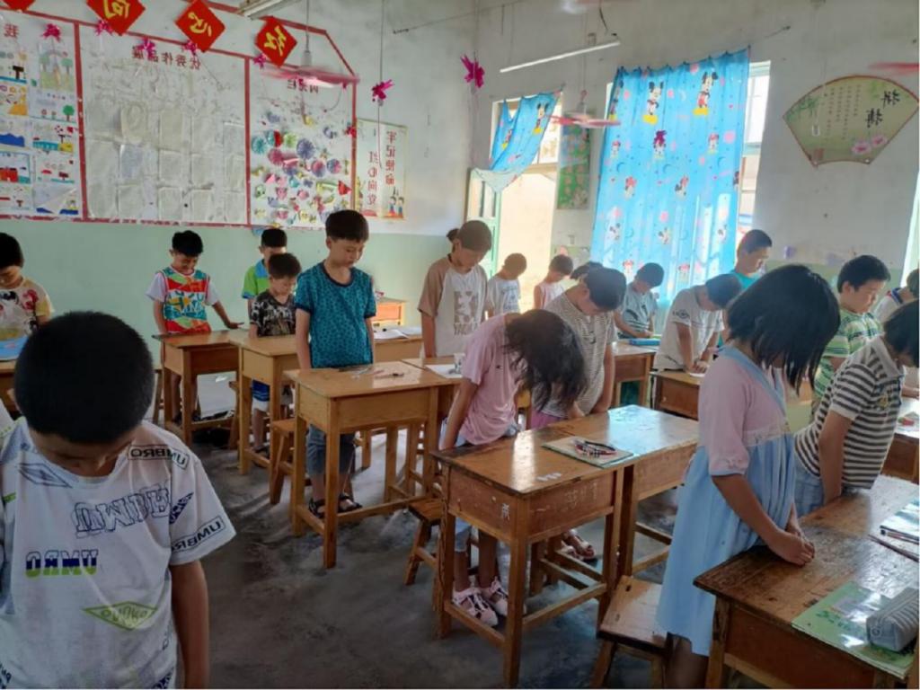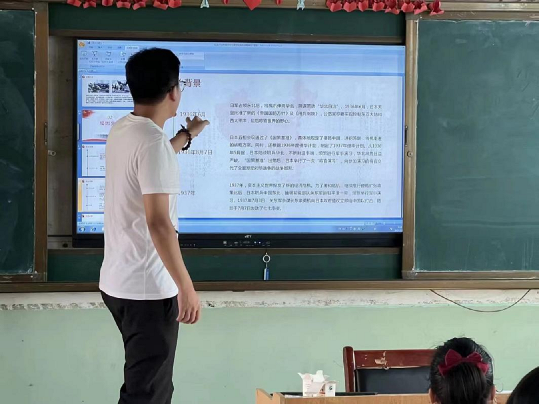 早上10点整,防空警报准时拉响,各班代课老师在讲台上引领全班同学低头默哀。默哀结束后,各代理班主任对本班同学进行思想教育,随后对抗日精神与井冈山精神展开宣讲。