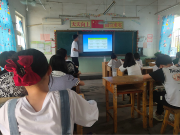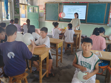 今天,实践团成员李阳带领同学们探究了关于乒乓球所受浮力的实验。课堂上,实践团成员以实验给同学们讲解了乒乓球浮在水面上的原理,同时同学们积极听讲,并亲身进行试验,课堂气氛活跃。另外,实践团成员李雨彤给同学们上了一节充满教育意义的音乐课,同学们学唱了《半生雪》,充满红色内涵的歌曲让同学们仿佛置身于那个战火纷飞的年代,让同学们切身体会到了革命志士保家卫国的决心与毅力。接着,做了《桃花笑》的手势舞,极大的放松了同学们的身心。最后,实践团成员赵文宜同学带领同学们观看英语视频,并进行生动有趣的讲解,同学们无不聚精会神观看与听讲,真正做到了寓学于乐。