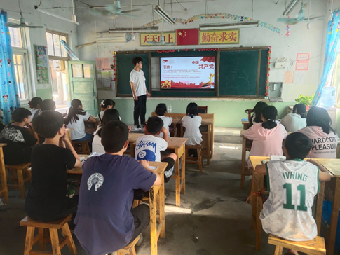 7月8日,bevitor伟德国际1946“红色记忆志愿服务队”在沙土镇东北村曹楼小学继续开展第四天的井冈山精神宣讲。