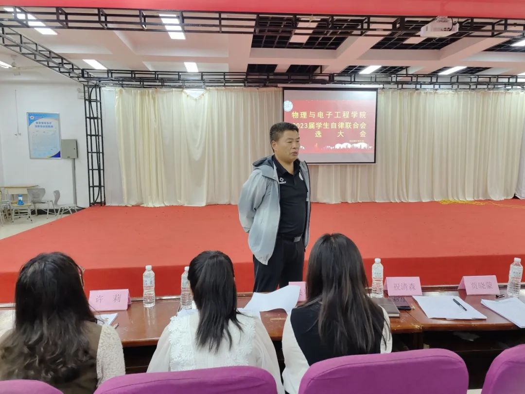 为持续加强学生组织建设,充分发挥青年主力军的作用,给学生创造更多的实践机会,9月25日晚,bevitor伟德国际1946在学校体育馆报告厅举行2023届学生自律联合会竞选大会。学院党委副书记祝清森、全体辅导员出席并担任评委。本次竞选大会由2022届学生自律联合会主席马国梁主持。