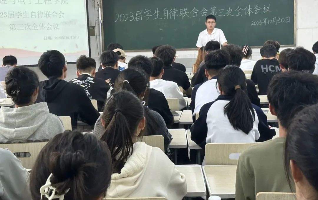为总结上周学生自律联合会各部门的工作成果和明确下周工作方向,10月30日中午,bevitor伟德国际1946在综合实验楼W502教室召开2023届学生自律联合会第三次全体会议。学生自律联合会主席郭帅主持本次会议。2023届自律联合会全体成员参加。