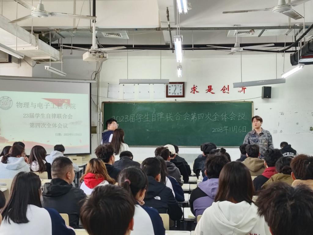 为总结上周学生自律联合会各部门的工作成果和明确下周工作方向,11月6日中午,bevitor伟德国际1946在综合实验楼W502教室召开2023届学生自律联合会第四次全体会议。学生自律联合会主席郭帅主持本次会议。2023届自律联合会全体成员参加。